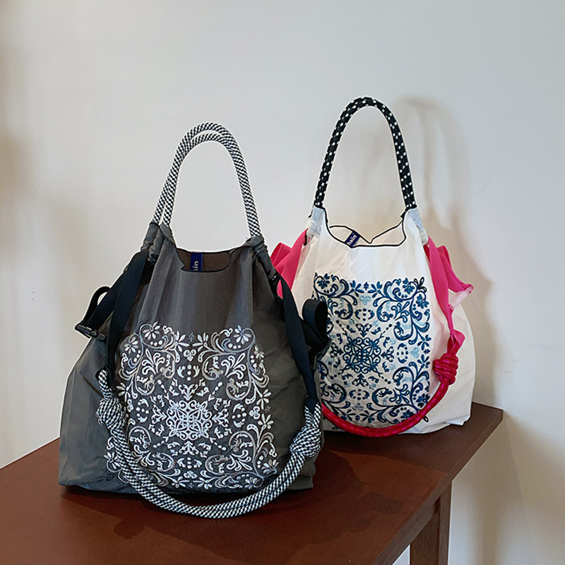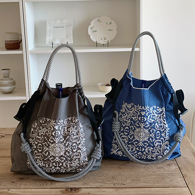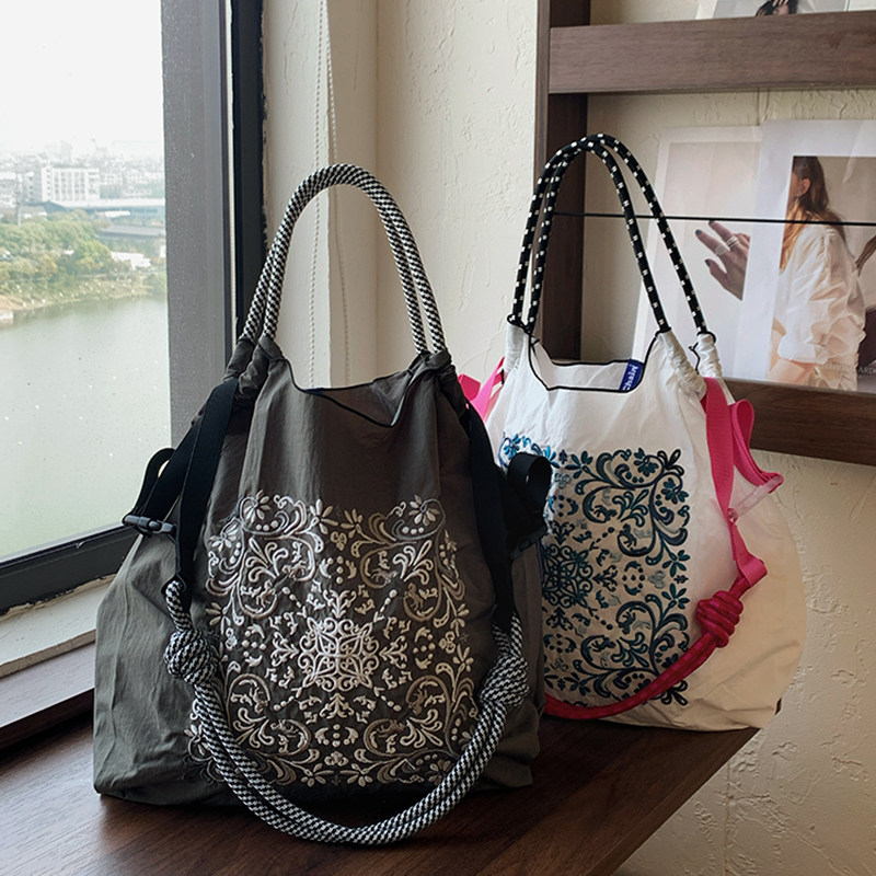 淘宝日系ball chain藤花刺绣购物袋小众尼龙环保袋新款时尚单肩斜挎包