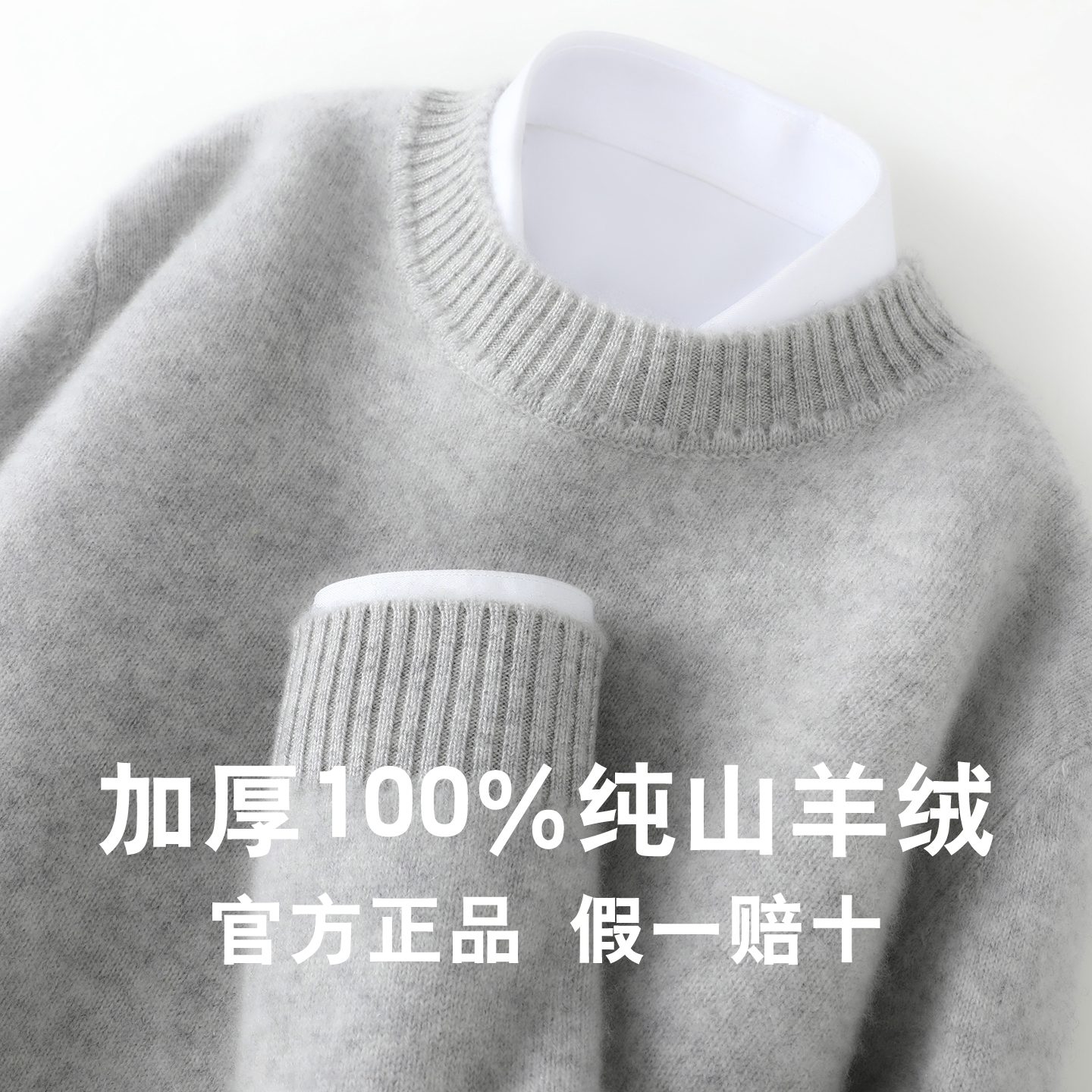 淘宝冬季新款加厚100%纯山羊绒衫男士半高圆领毛衣男装宽松针织打底衫