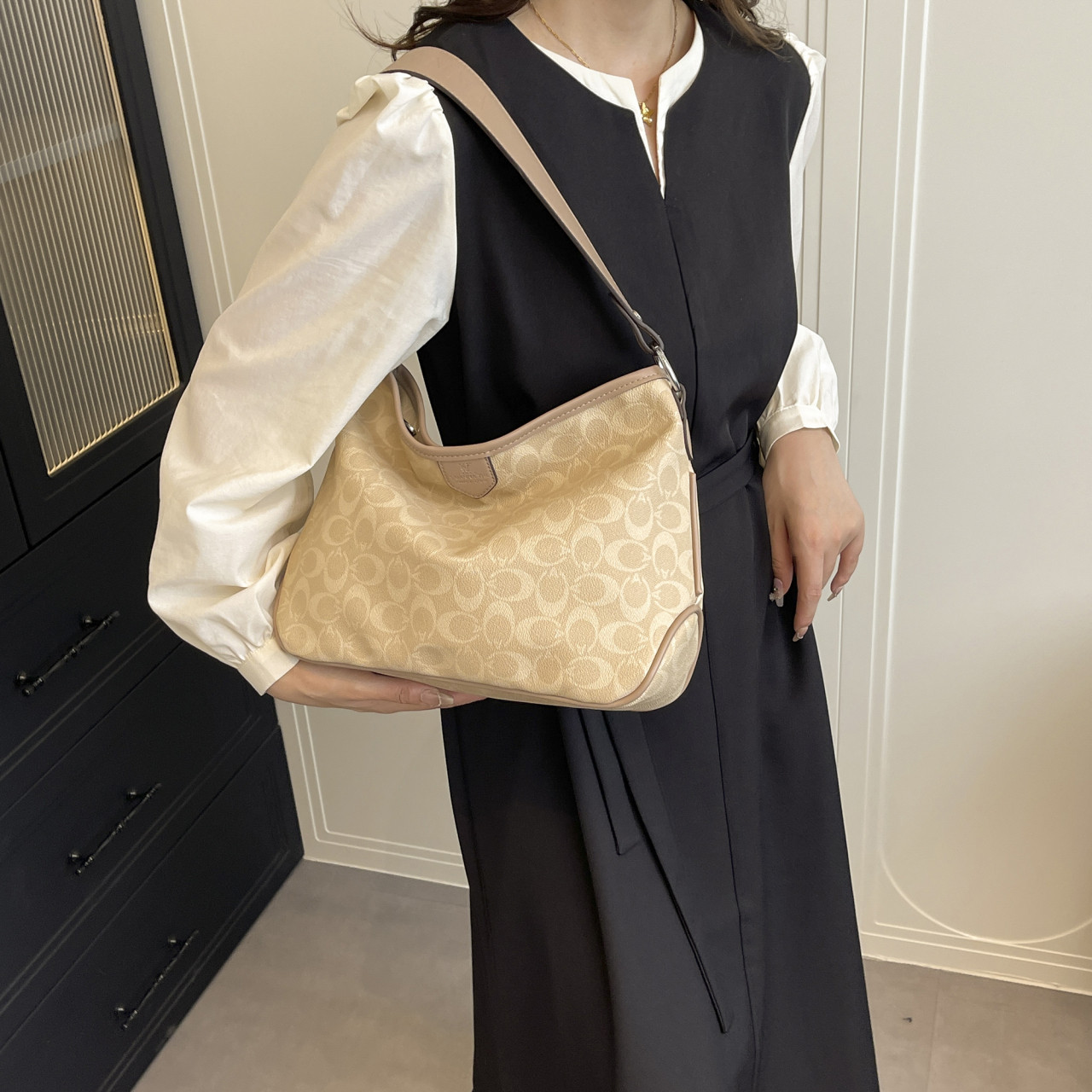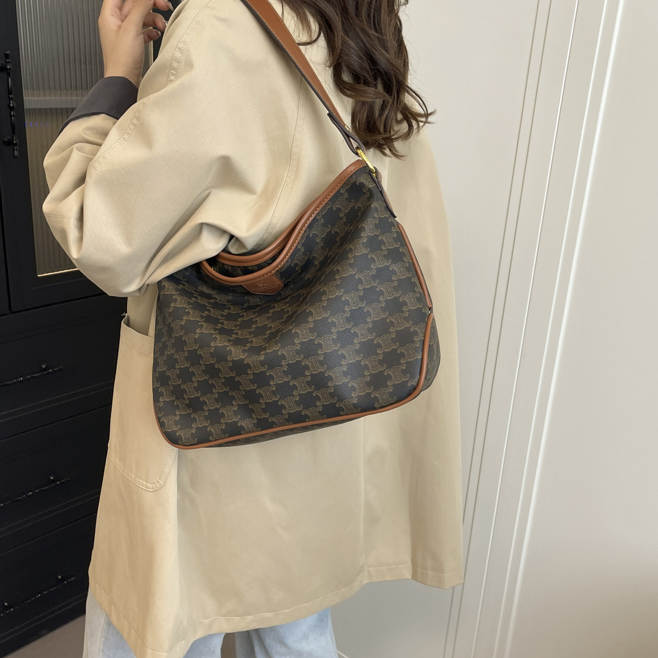 2025年新款大容量女式老花通勤机场托特包强势来袭,融合经典老花元素与现代实用设计,成为年度最火百搭单品。超大容量轻松容纳通勤文件、笔记本电脑及日常用品,满足机场出行与职场需求。采用优质耐磨面料,质感高级且轻盈耐用。可单肩、斜挎或手提,多种背法随心切换,适配通勤、旅行、购物等多样场景。简约廓形搭配复古老花图案,时尚不挑穿搭,轻松驾驭休闲与职场风格。无论是都市白领还是时尚达人,这款托特包都是提升气质与实用性的必备之选,轻松打造 chic 又高效的日常造型。