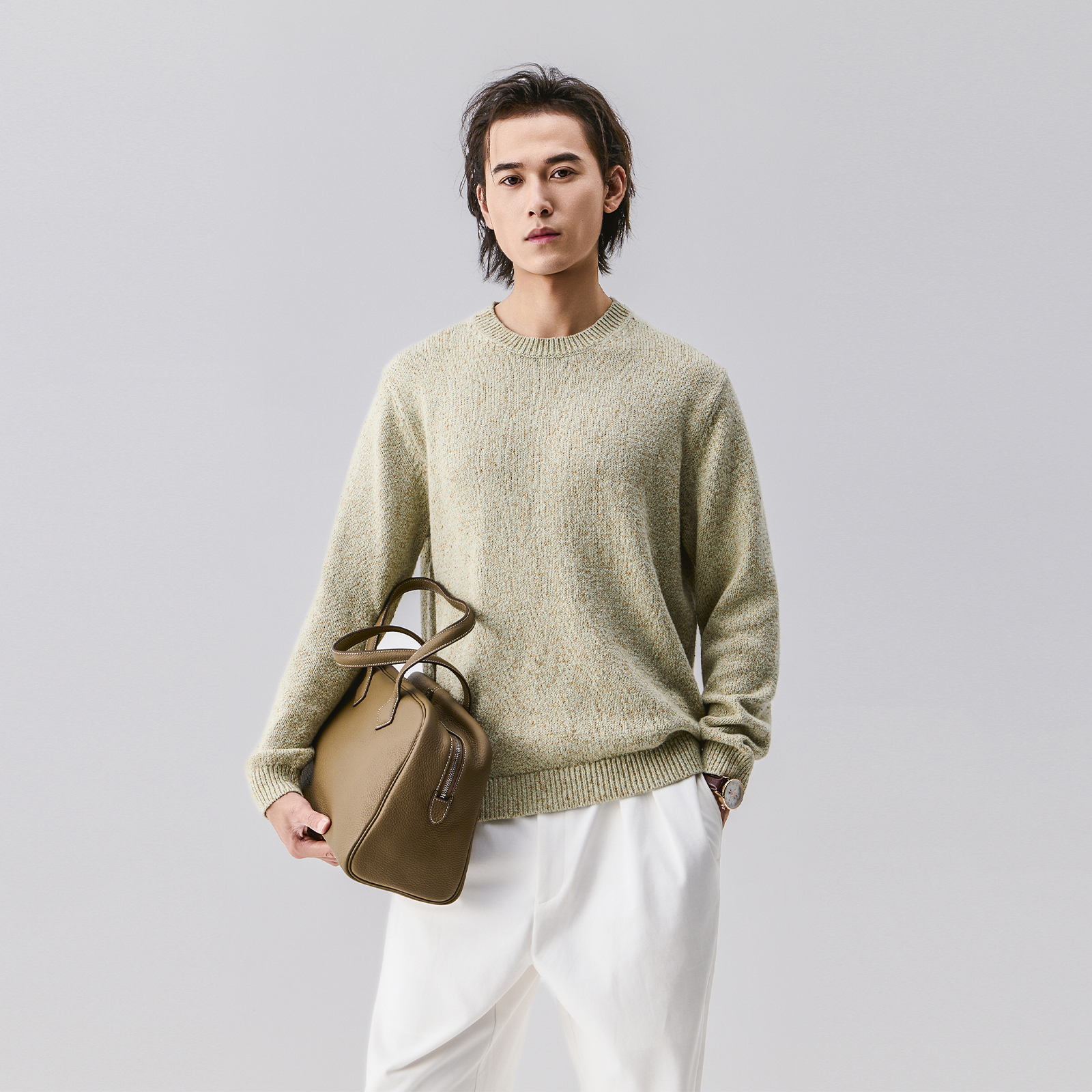 2色圆领绞花毛衣|255g康赛妮羊绒美丽诺羊毛混纺针织上衣男百搭