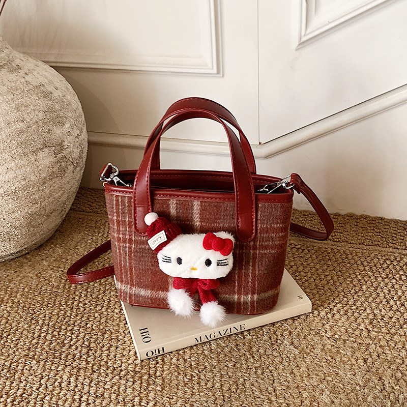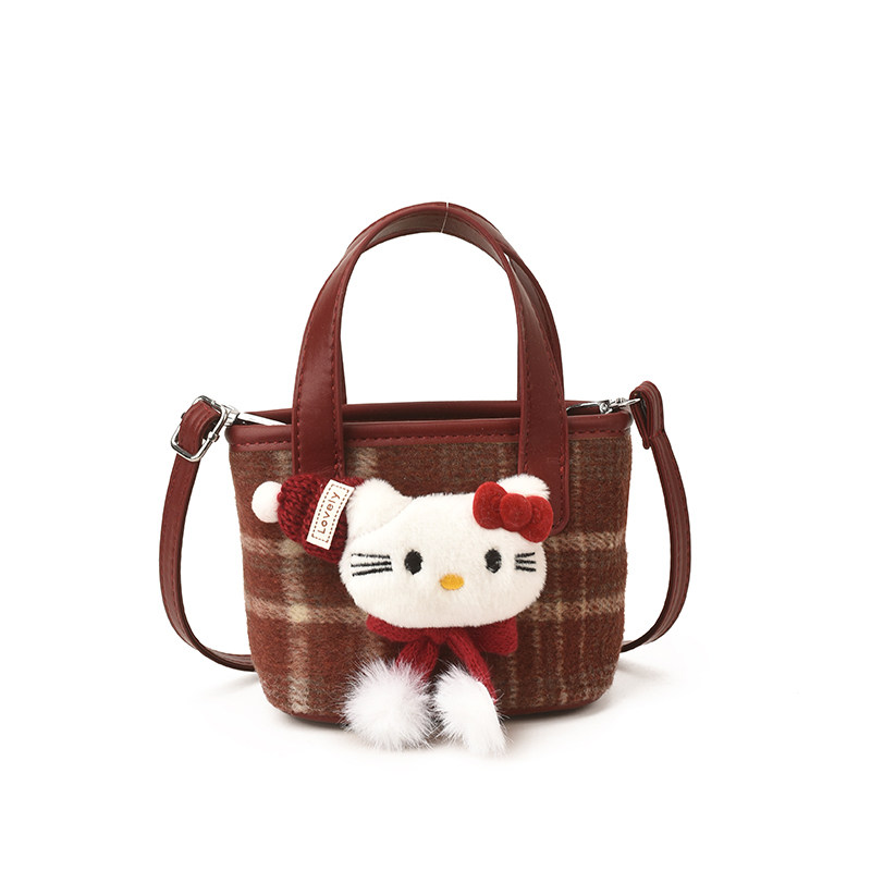 淘宝女童包包2026新款斜挎包儿童红色格子水桶手提包时尚小女孩拜年包