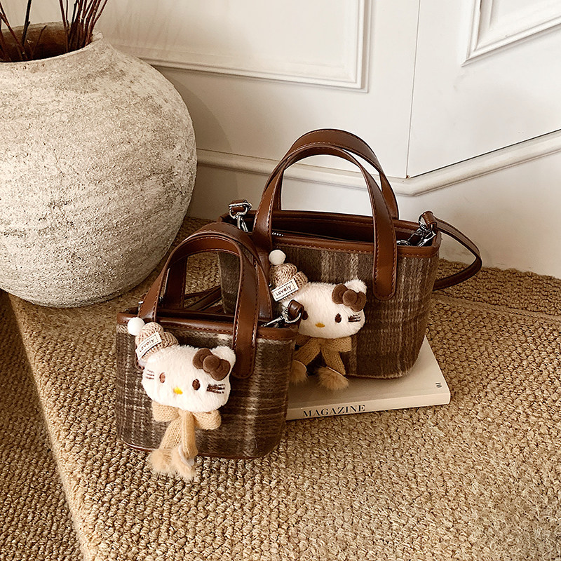 淘小白兔几 毛绒水桶包包女毛呢新款斜挎包包手提单肩包逛街收纳包