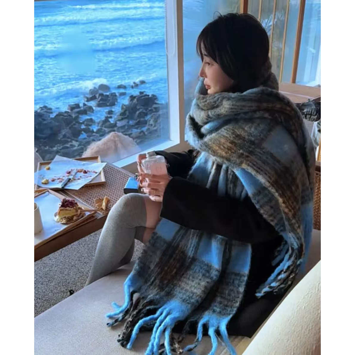 淘2025秋冬季新款高品质韩版纯色三角巾女保暖护颈外搭保暖披肩围巾