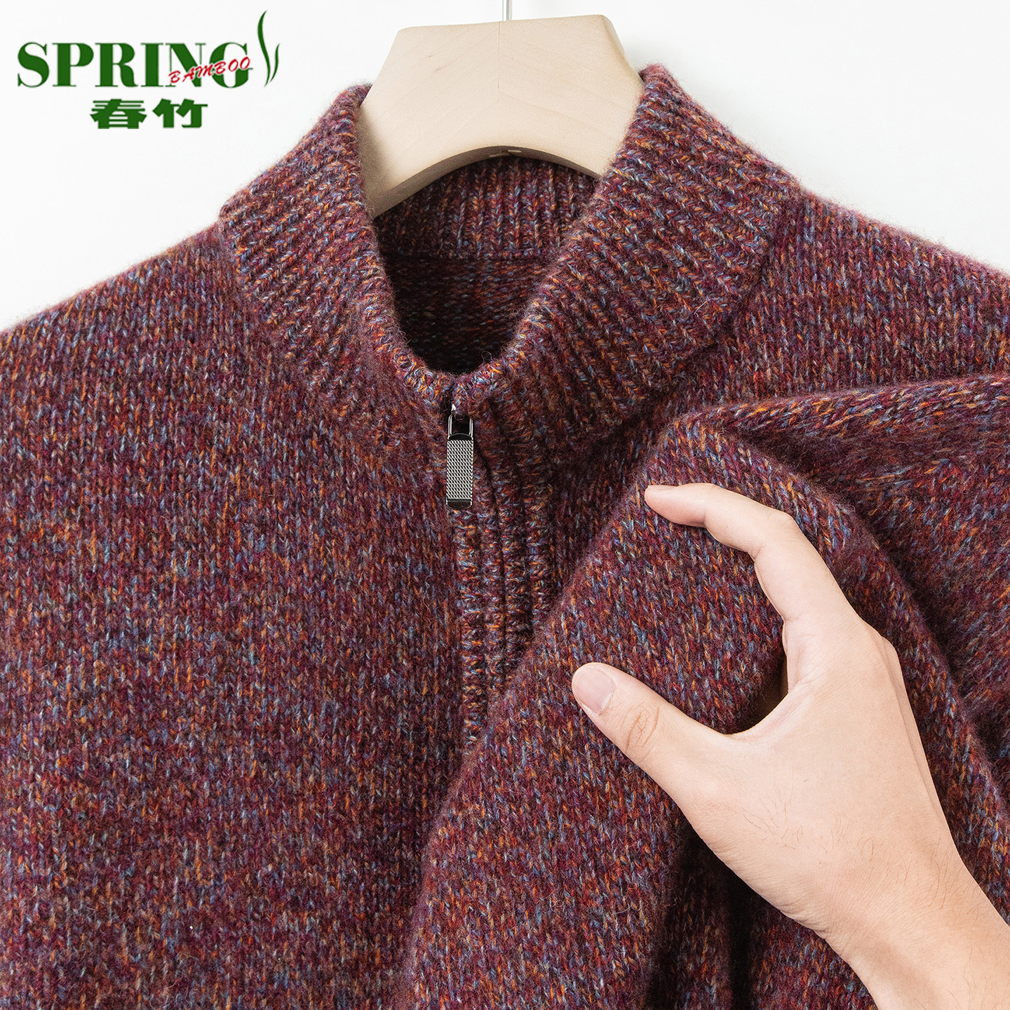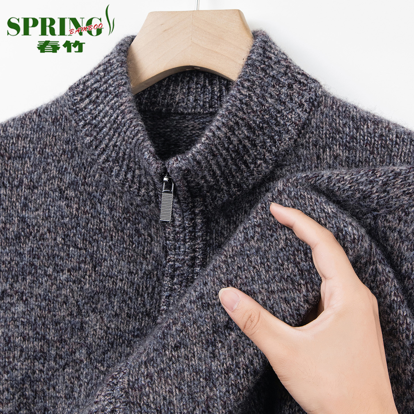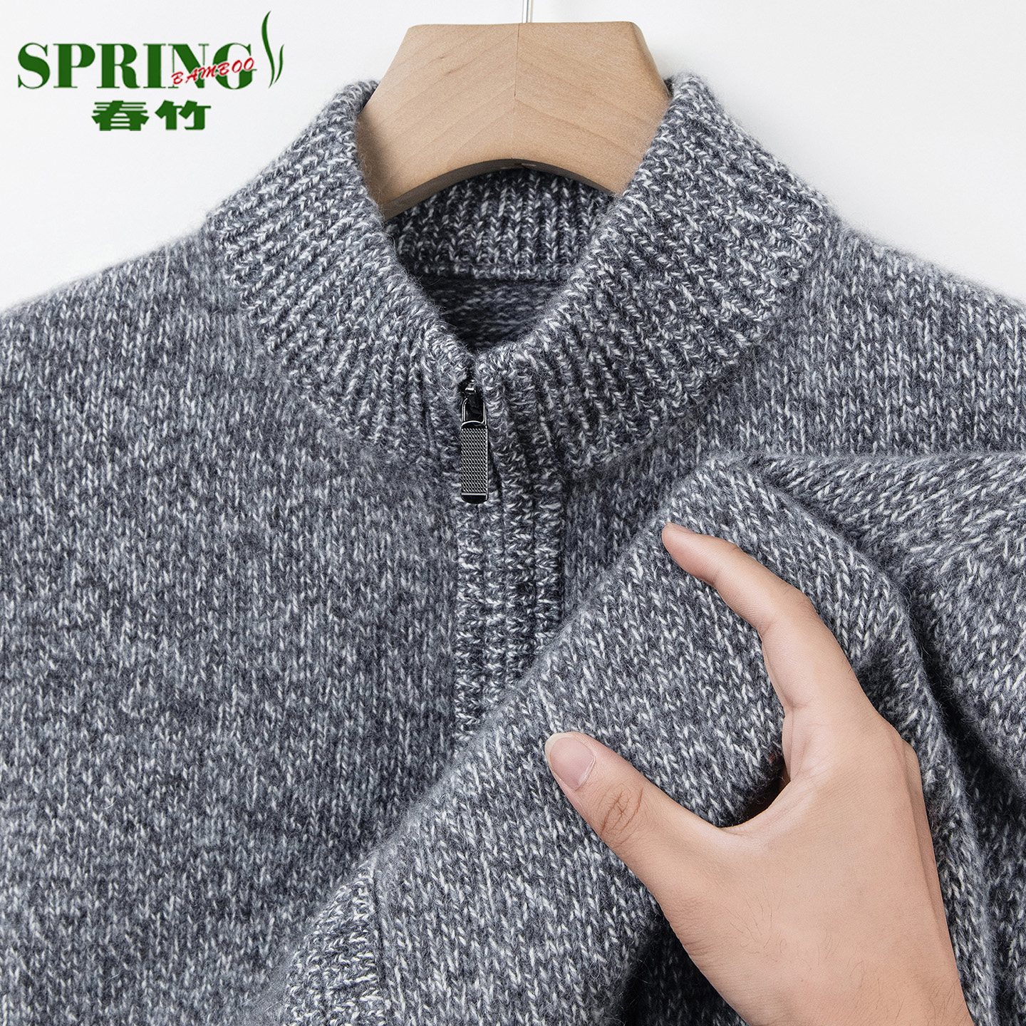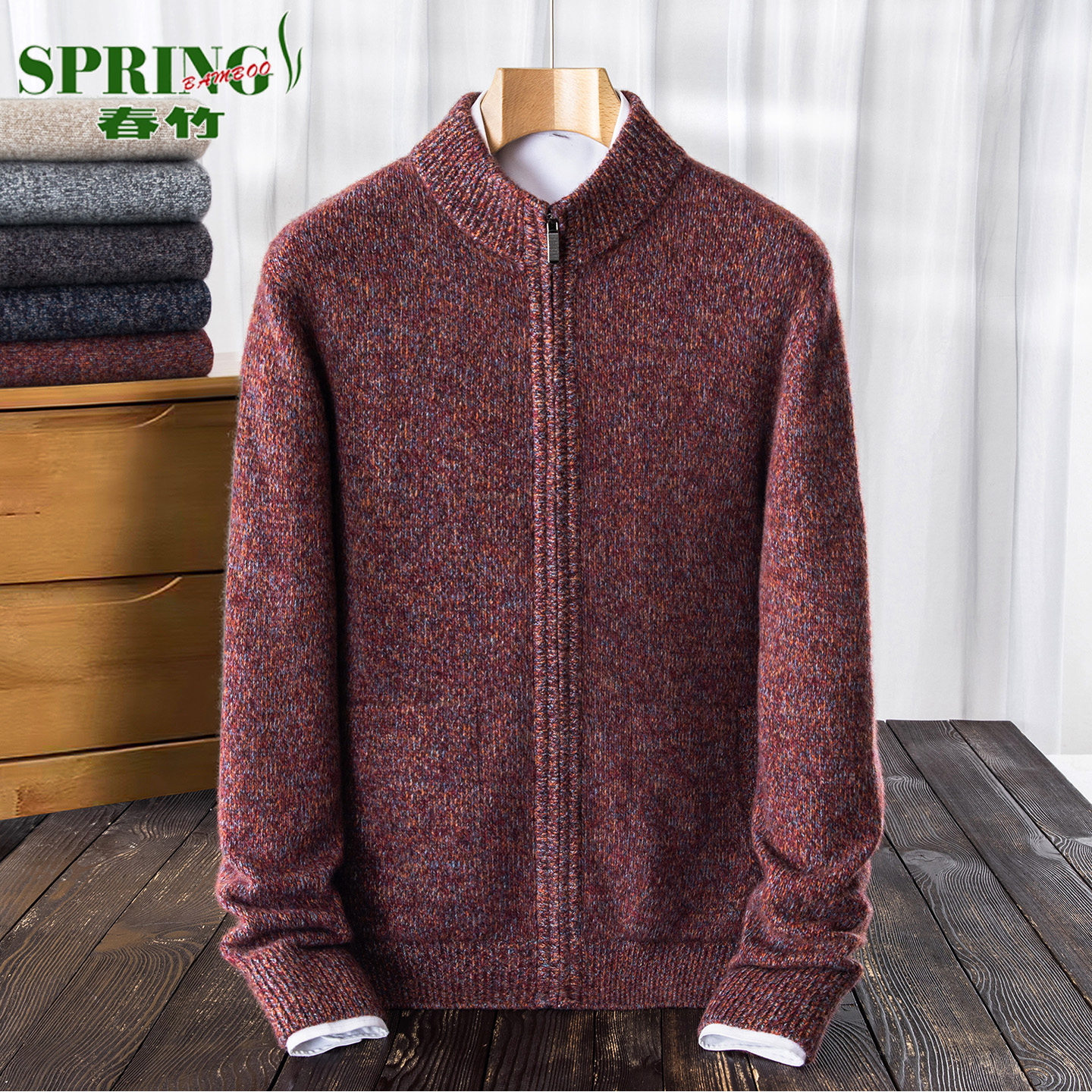 淘宝春竹100%羊绒衫开衫男秋冬新款加厚中年本命年全拉链立领毛衣外套