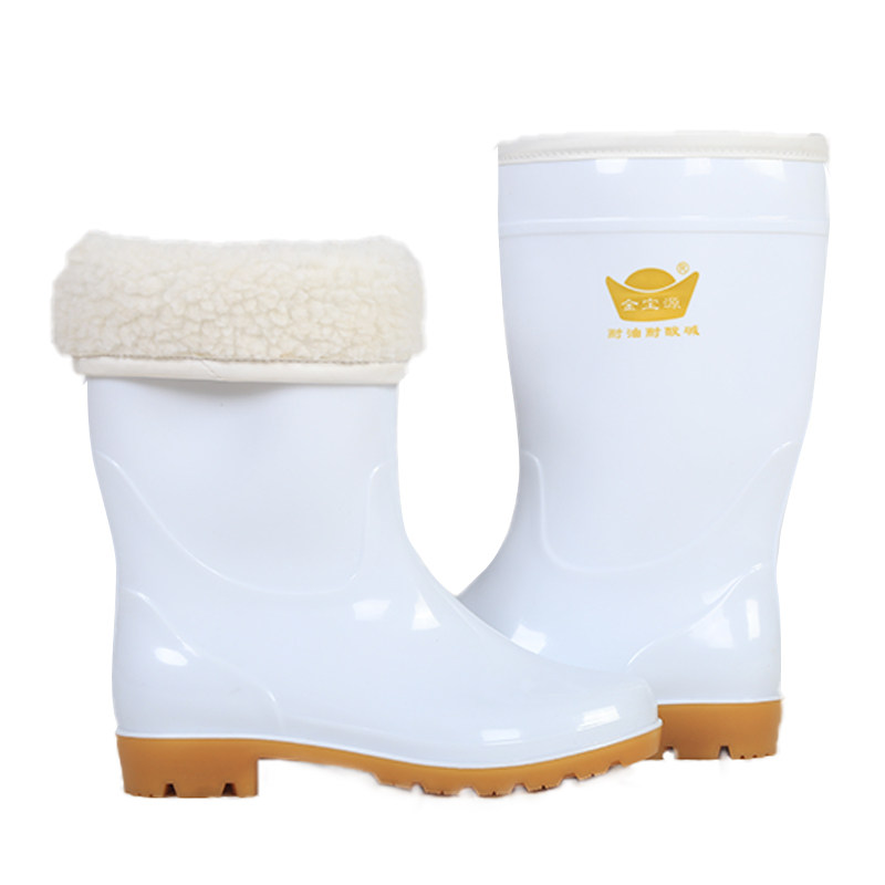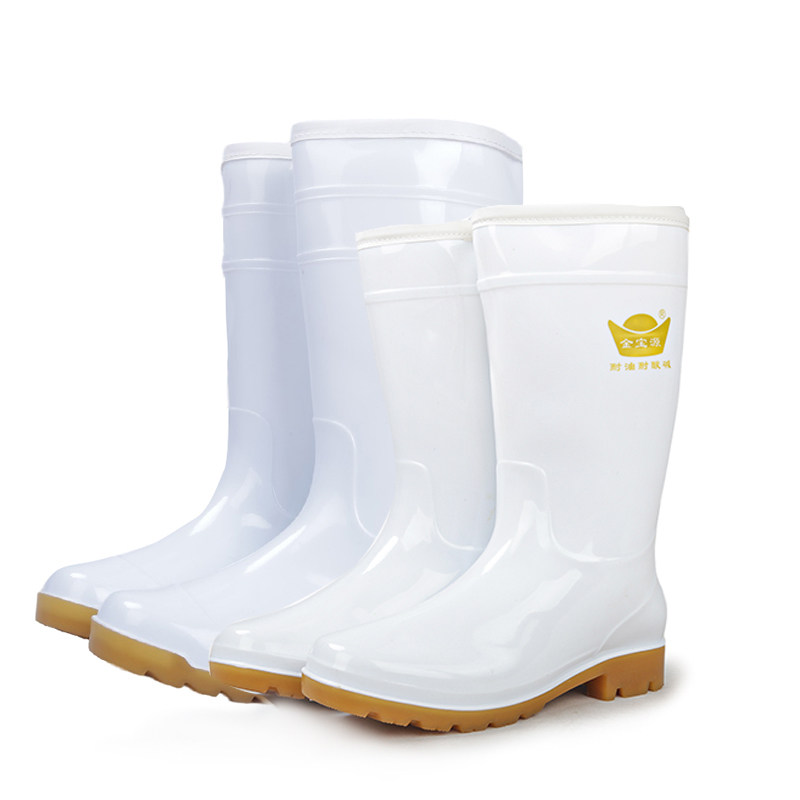 白色食品雨鞋是一款专为食品加工、医药、实验室等洁净环境设计的中高筒防滑水靴。采用优质耐酸碱、耐油材质制成,有效抵御化学液体侵蚀,保障作业安全。鞋面洁白易清洁,符合食品级卫生标准,内壁可选配棉质内衬,提升穿着舒适度与保暖性。防滑耐磨大底设计,适应湿滑地面,确保行走稳固。男女通用款式,贴合脚型,穿脱便捷。适用于屠宰场、水产加工、清洁作业等多种潮湿环境,兼具防护性、卫生性与耐用性,是食品行业从业者的理想 footwear 选择。