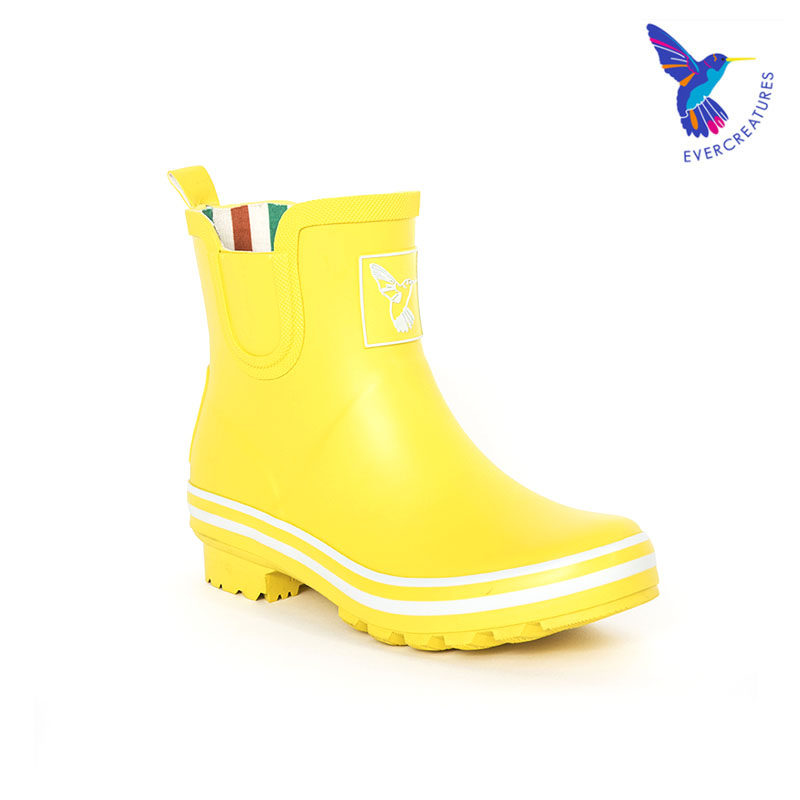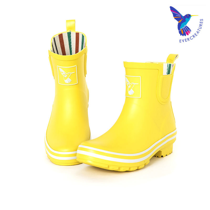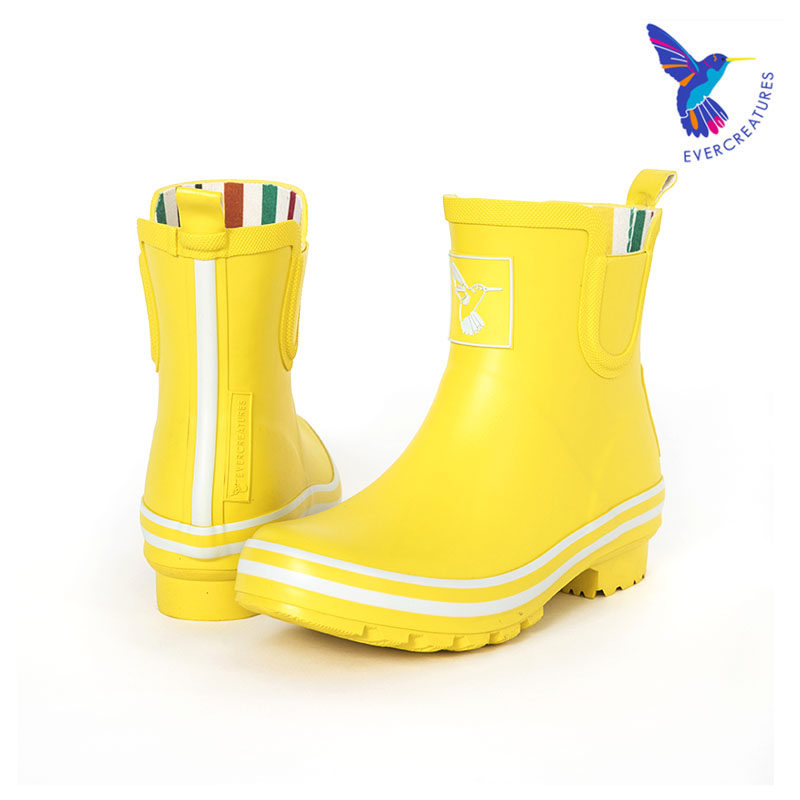 Evercreatures英国雨靴专为都市女性设计,融合时尚与实用,采用优质环保橡胶材质,100%防水防滑,轻松应对雨天湿滑路面。这款黄色短筒雨鞋色彩明亮,造型简约百搭,适合日常通勤、郊游或园艺等多种场景。鞋身轻便柔软,内衬舒适透气,长时间穿着不闷脚。高筒设计有效防止雨水倒灌,底部深纹防滑大底增强抓地力,保障行走安全。Evercreatures坚持英国工艺标准,注重细节与品质,是雨季出行的理想之选。无论是搭配裙装还是裤装,都能为 rainy day 增添一抹亮丽活力。