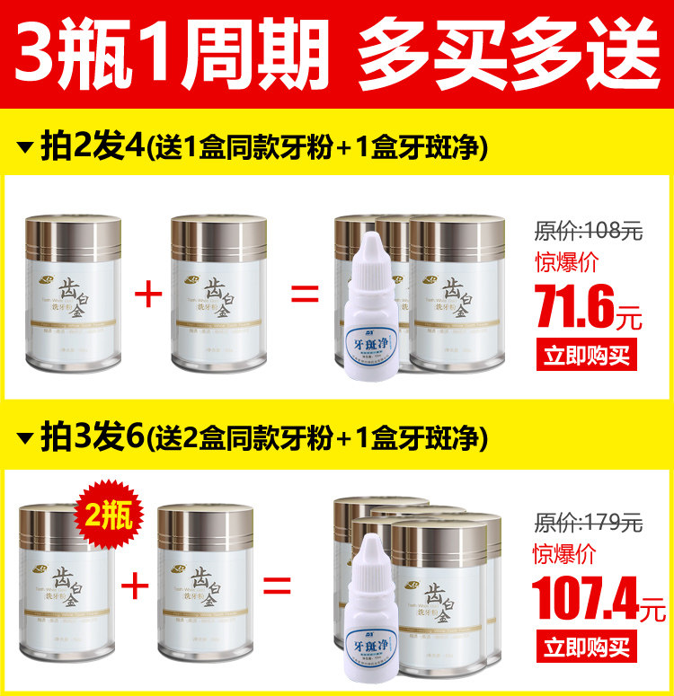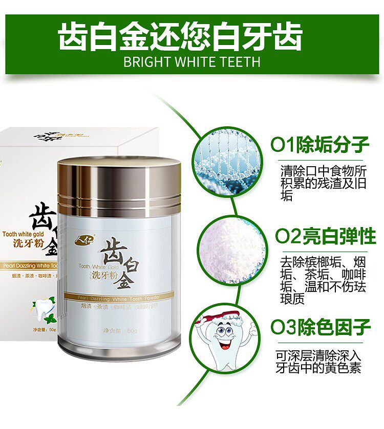 淘宝齿白金洗牙粉牙膏洗白牙齿小苏打刷走黄牙烟渍牙洁牙清新口气正品