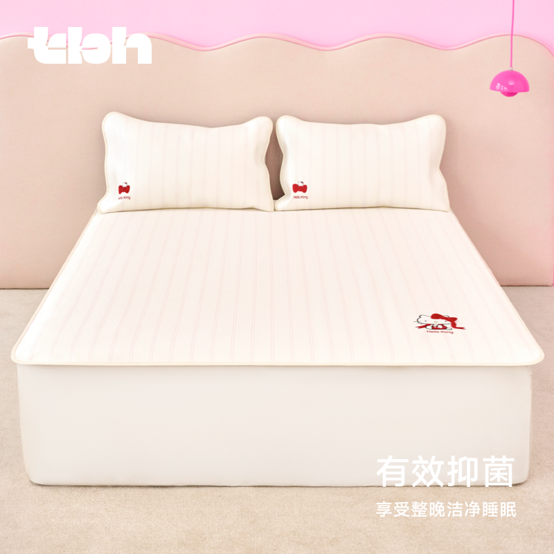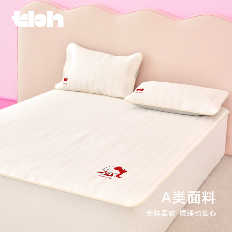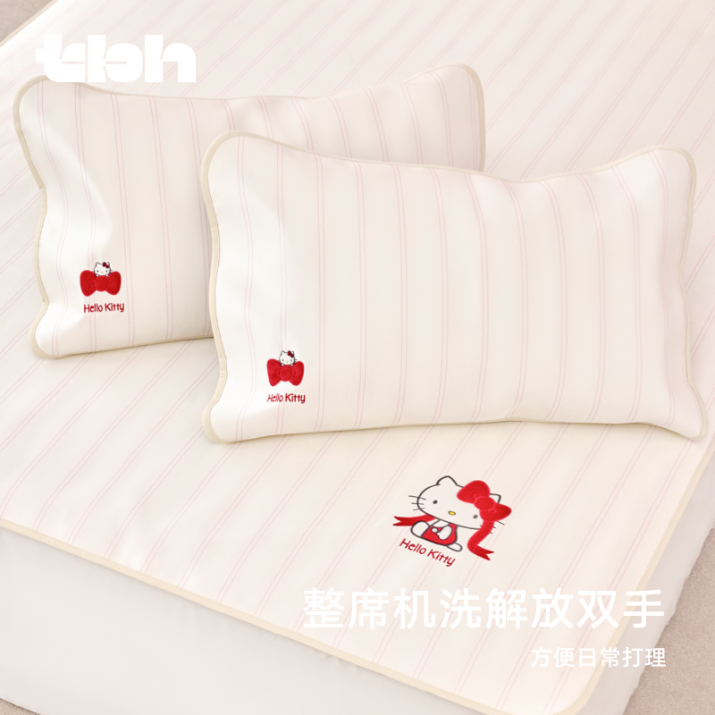 tbh野兽派家居联名三丽鸥推出的Hello Kitty冰丝凉席,以清新奶油粉为主色调,融合可爱卡通元素,为夏日家居增添甜美气息。采用优质冰丝面料,触感柔滑凉爽,透气排湿,有效缓解闷热,带来舒适睡眠体验。席面柔软亲肤,适合敏感肌肤,且支持机洗,清洁便捷,不易变形褪色。简约包边设计,耐用防滑,贴合床垫不易移位。无论是自用还是作为礼物,这款凉席都将实用性与萌趣美学完美结合,是夏季居家必备好物,让清凉与可爱相伴每一天。