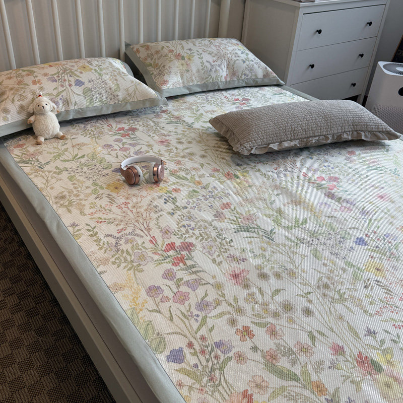 淘宝田园清新夏季可机洗席子冰丝凉席三件套床笠款冰丝席空调软席1.8m