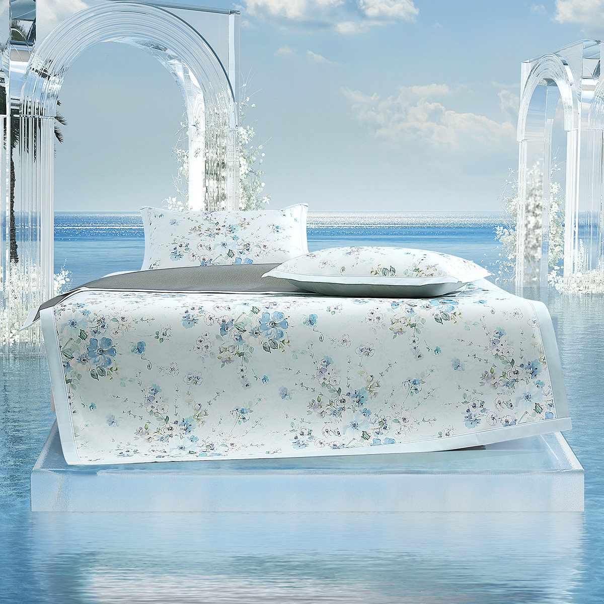 天猫水星家纺1000D可水洗冰丝席A类抑菌凉感席子夏季印花凉席家用床品