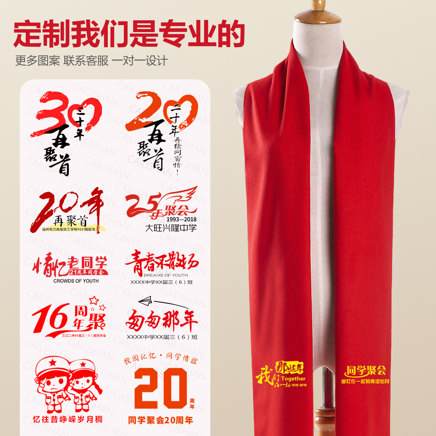 天红围巾定制logo同学聚会过年结婚过寿披肩年会中国红围巾定制刺绣