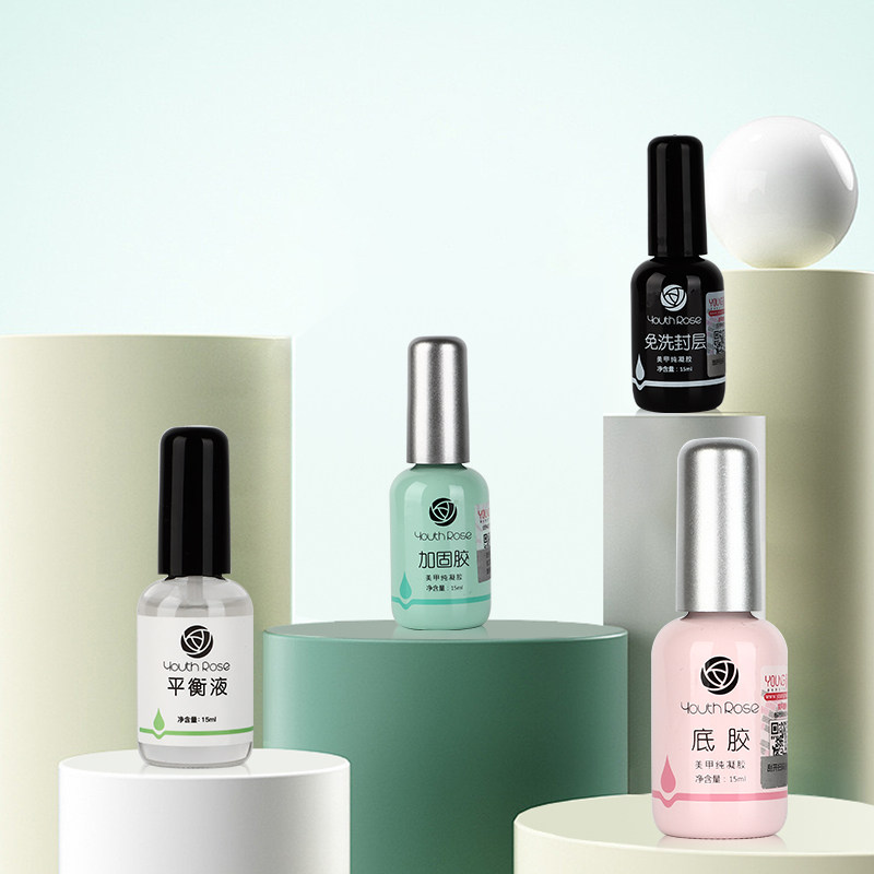 Youthrose颜蕊甲油胶功能胶系列专为美甲店设计,包含底胶、封层胶和加固胶,适用于各类甲油胶操作。其底胶附着力强,有效隔离甲面与色胶,防止色素沉淀,延长美甲持久度;加固胶质地坚韧,可增强甲面硬度,修复脆弱指甲,提升整体质感;封层胶则提供高亮或哑光选择,耐磨防刮,锁色护甲,令美甲更持久亮丽。全系列采用低敏配方,安全无刺激,操作流畅易涂抹,快干不缩胶,满足专业美甲师对品质与效率的双重需求,是美甲店提升服务品质的得力助手。