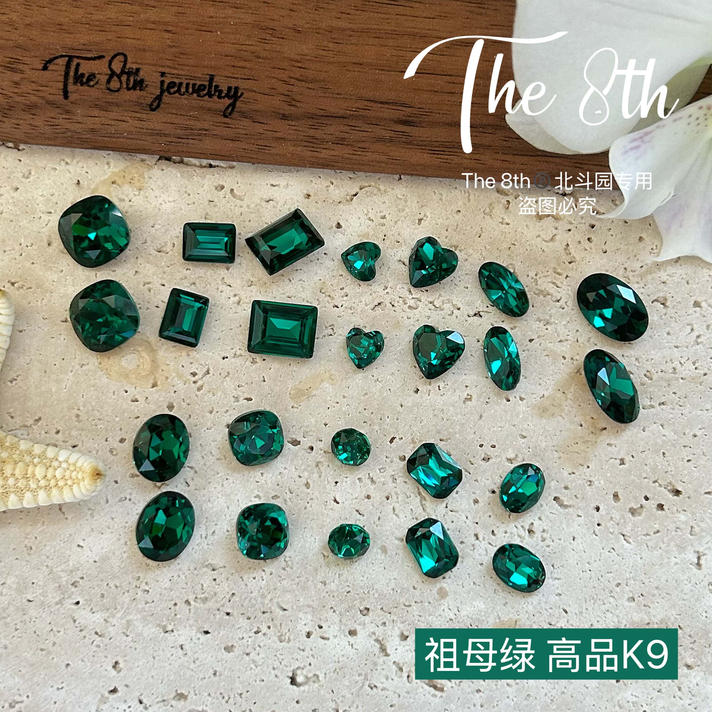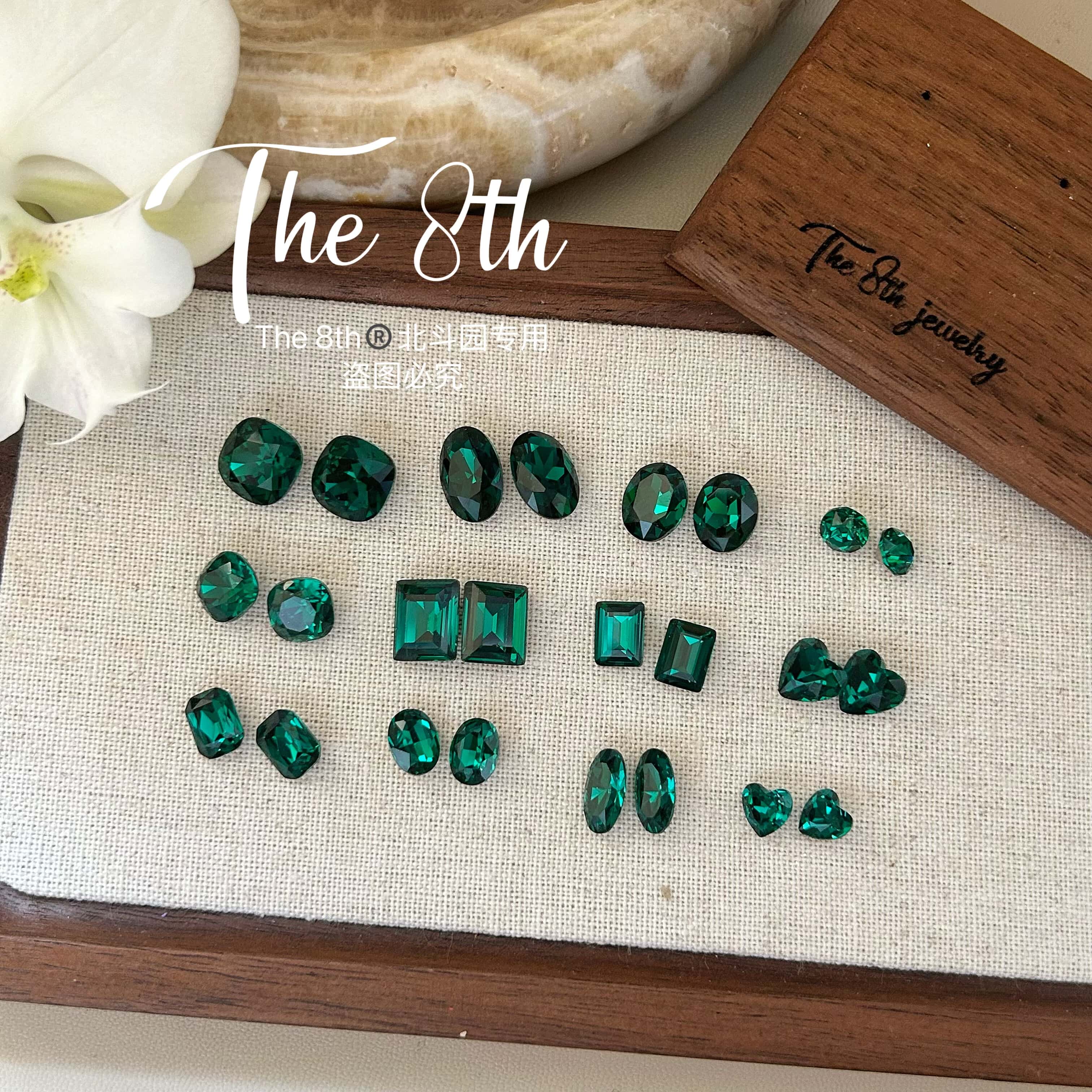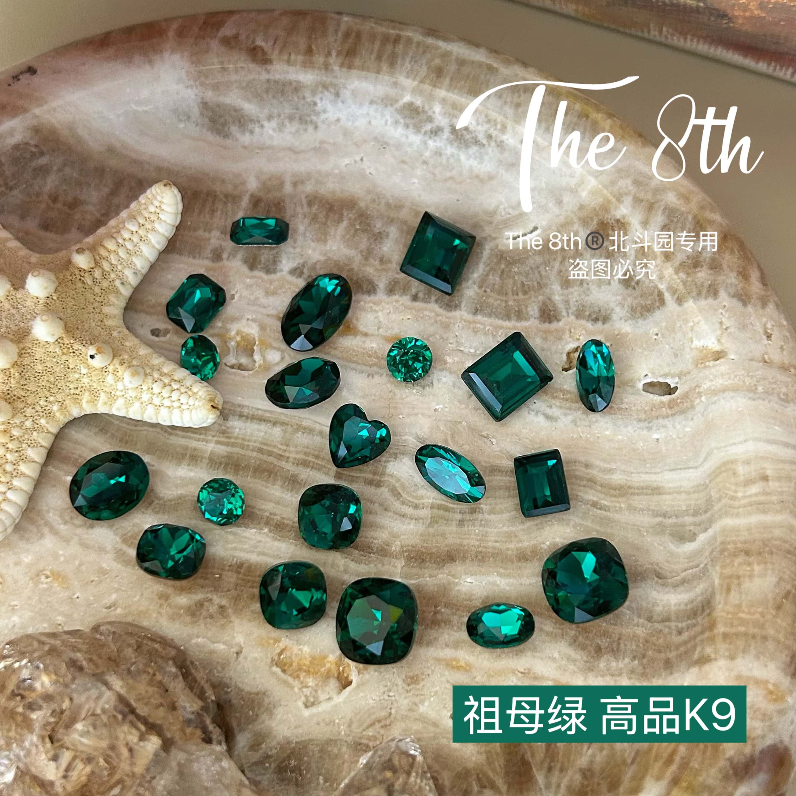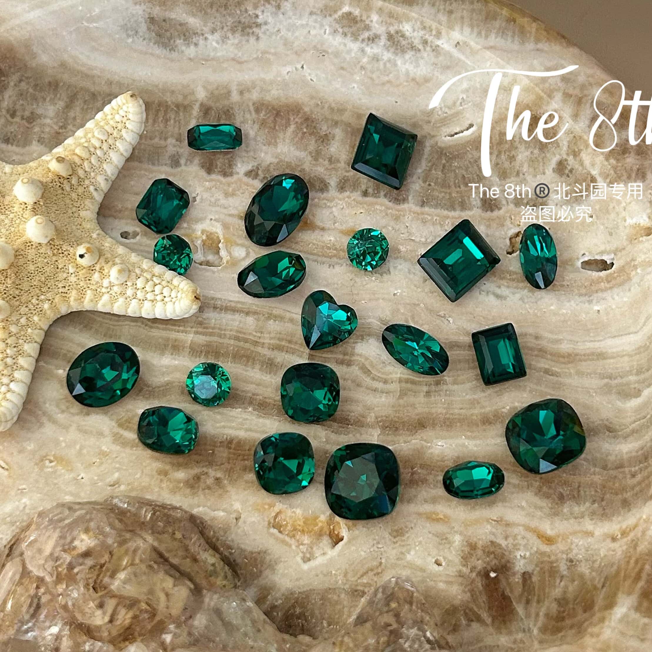 淘宝The 8th祖母绿超闪美甲钻冰糖肥方椭圆翡翠绿堆钻绿宝石尖底E4-52