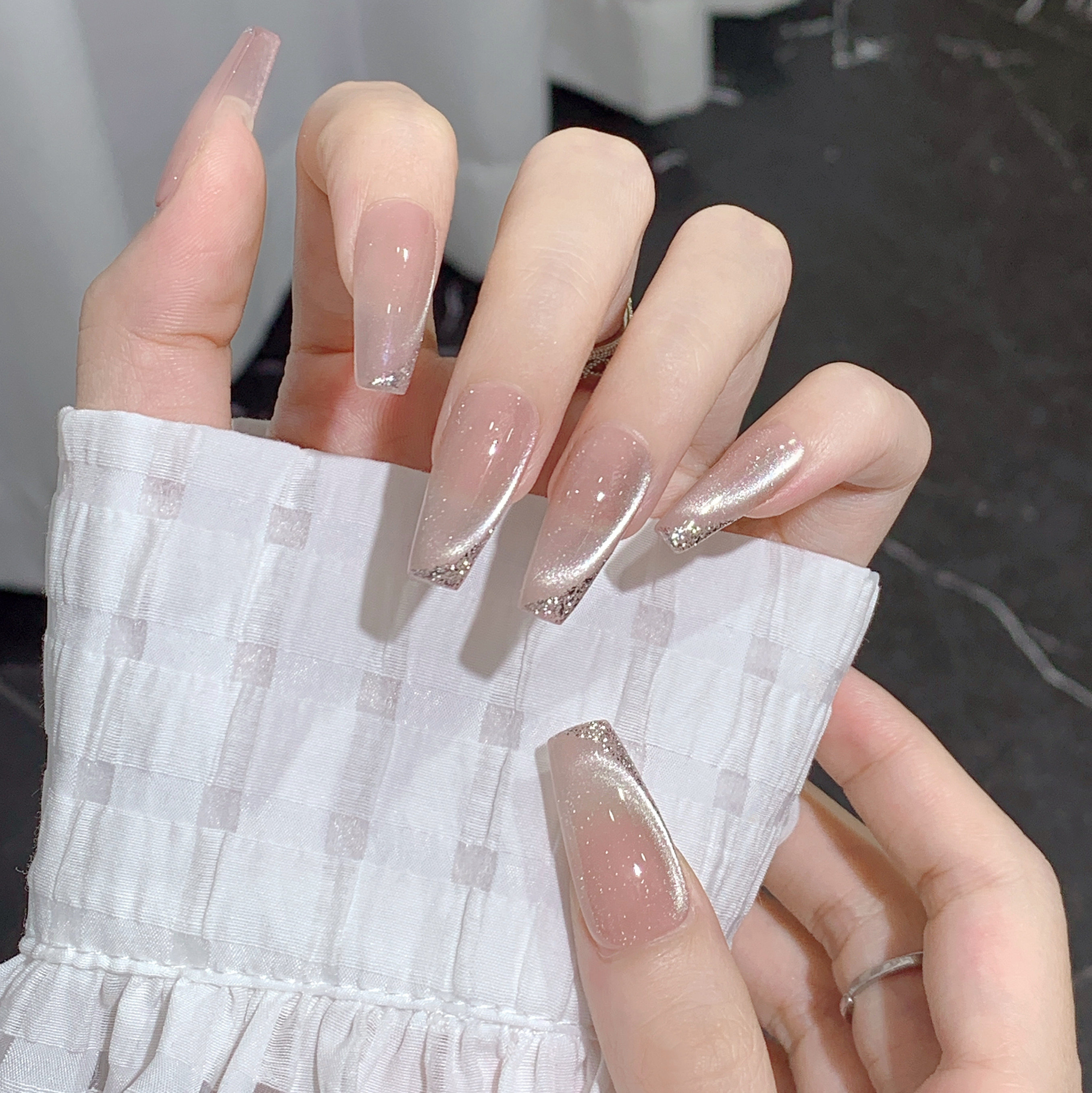 曼辞手工穿戴甲法式渐变猫眼花花钻石美甲显白气质高级感假指甲