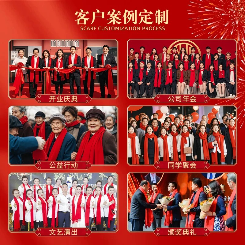 天红围巾定制logo同学聚会过年结婚过寿披肩年会中国红围巾定制刺绣