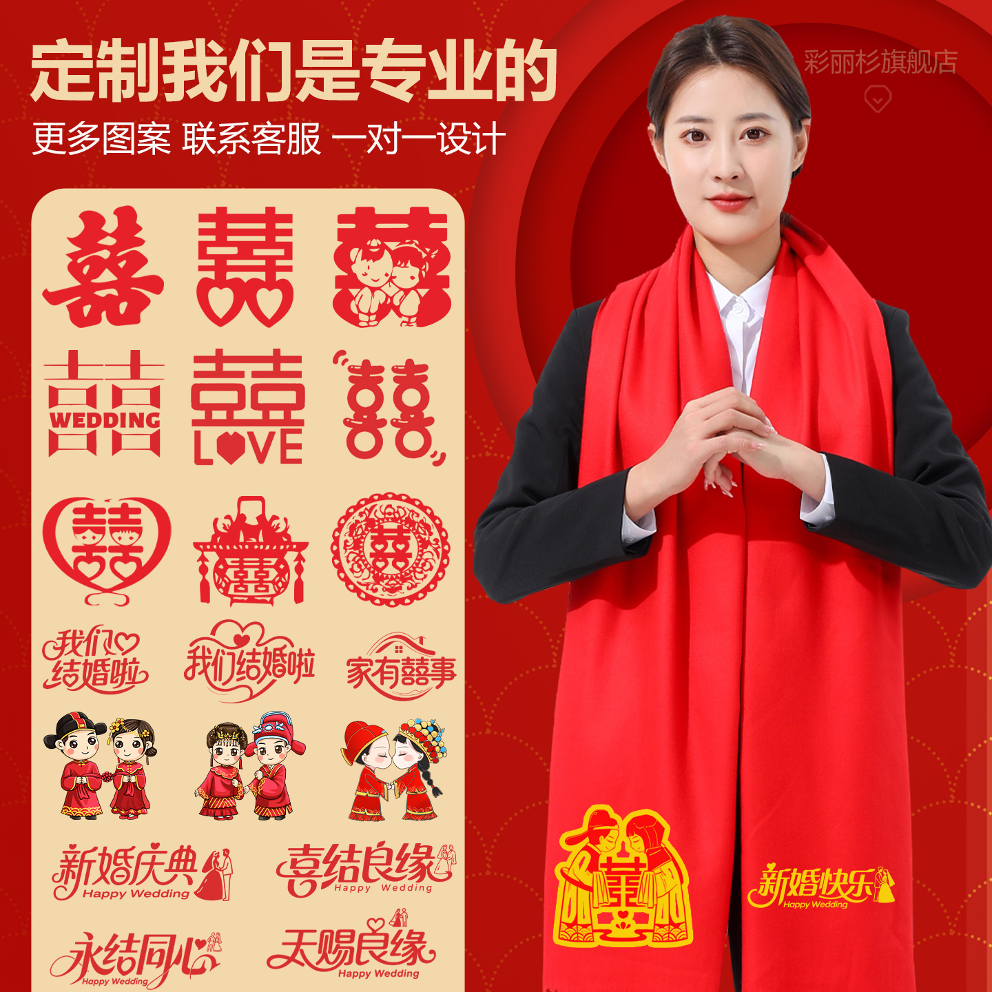 淘百年好合接亲送亲红围巾中国红定制婚礼婚庆大红色马年会印字定制