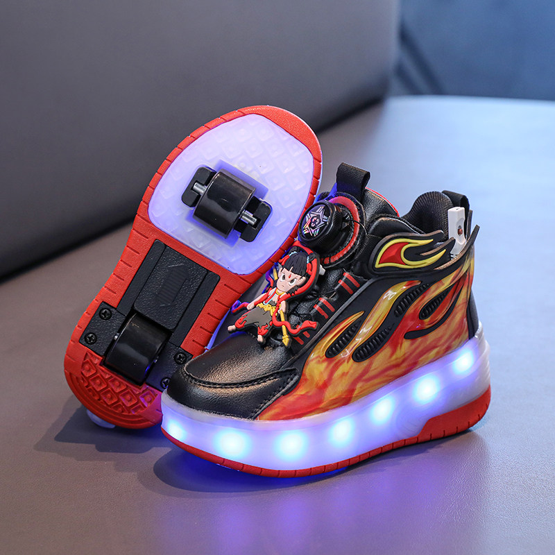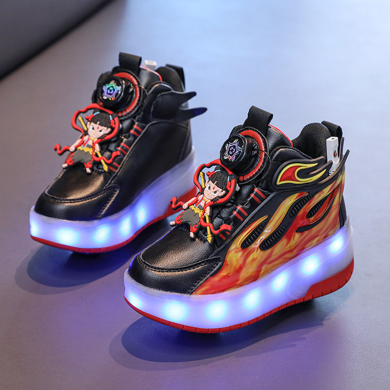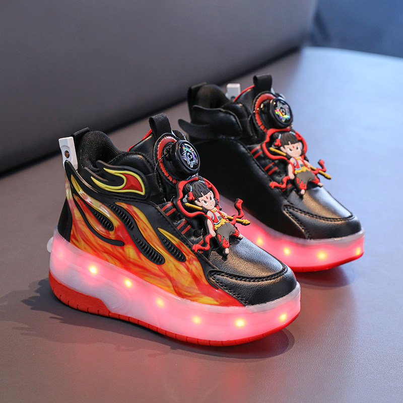 淘宝哪吒童鞋男童暴走鞋2025新款儿童双轮运动鞋中大童学生发光轮滑鞋
