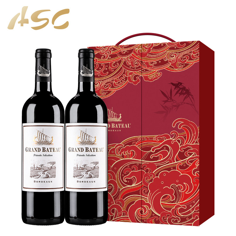 天猫ASC法国进口红酒小龙战舰珍选波尔多干红葡萄酒2支礼盒装年货送礼