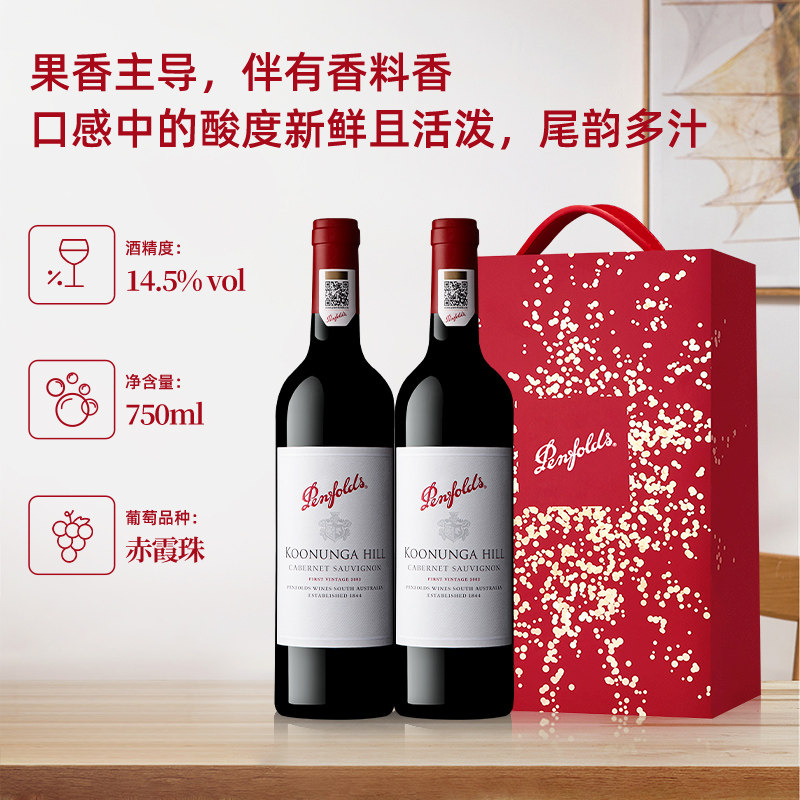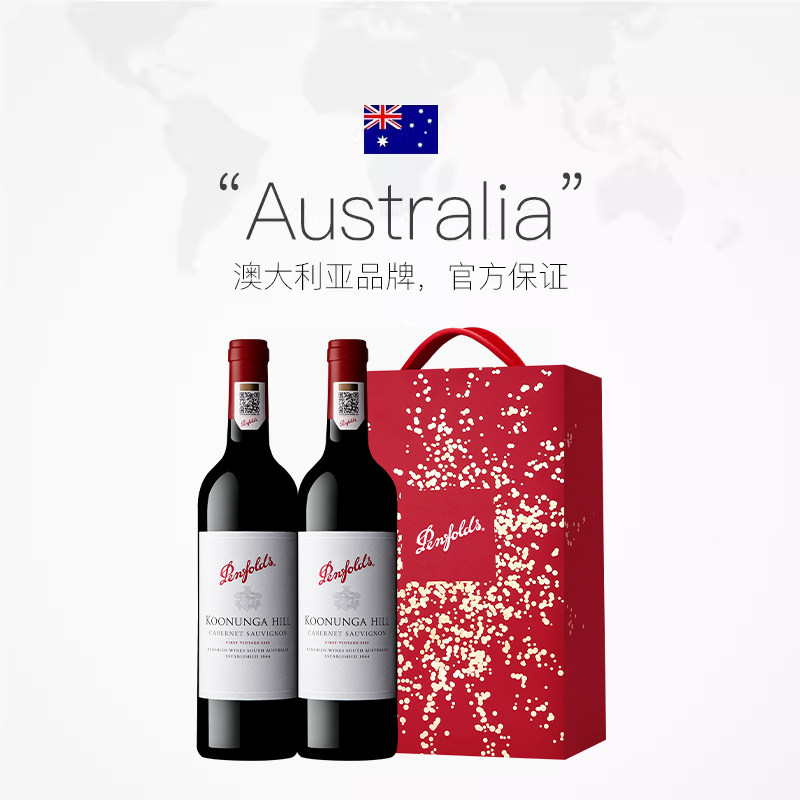 天猫【自营】奔富蔻寇兰山赤霞珠红酒年货送礼盒装澳洲进口干红葡萄酒