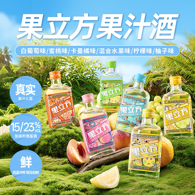 天猫江小白果立方15/23度168mL多瓶蜜桃葡萄柠檬果酒女士低度甜酒微醺