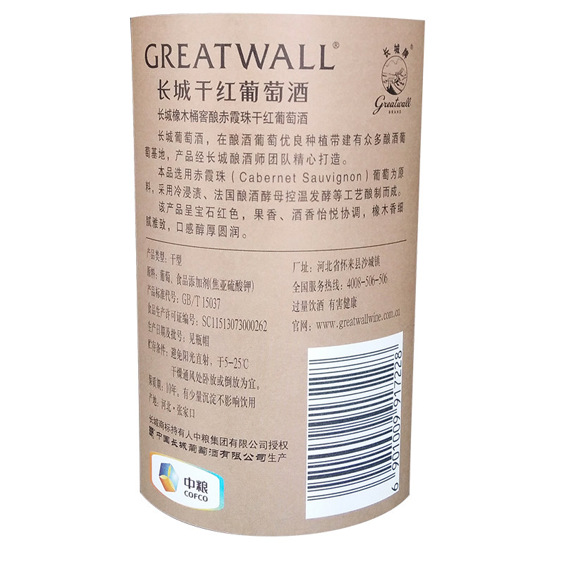 天猫官方正品中粮长城干红葡萄酒红酒窖酿赤霞珠750ml*6支整箱装佐餐