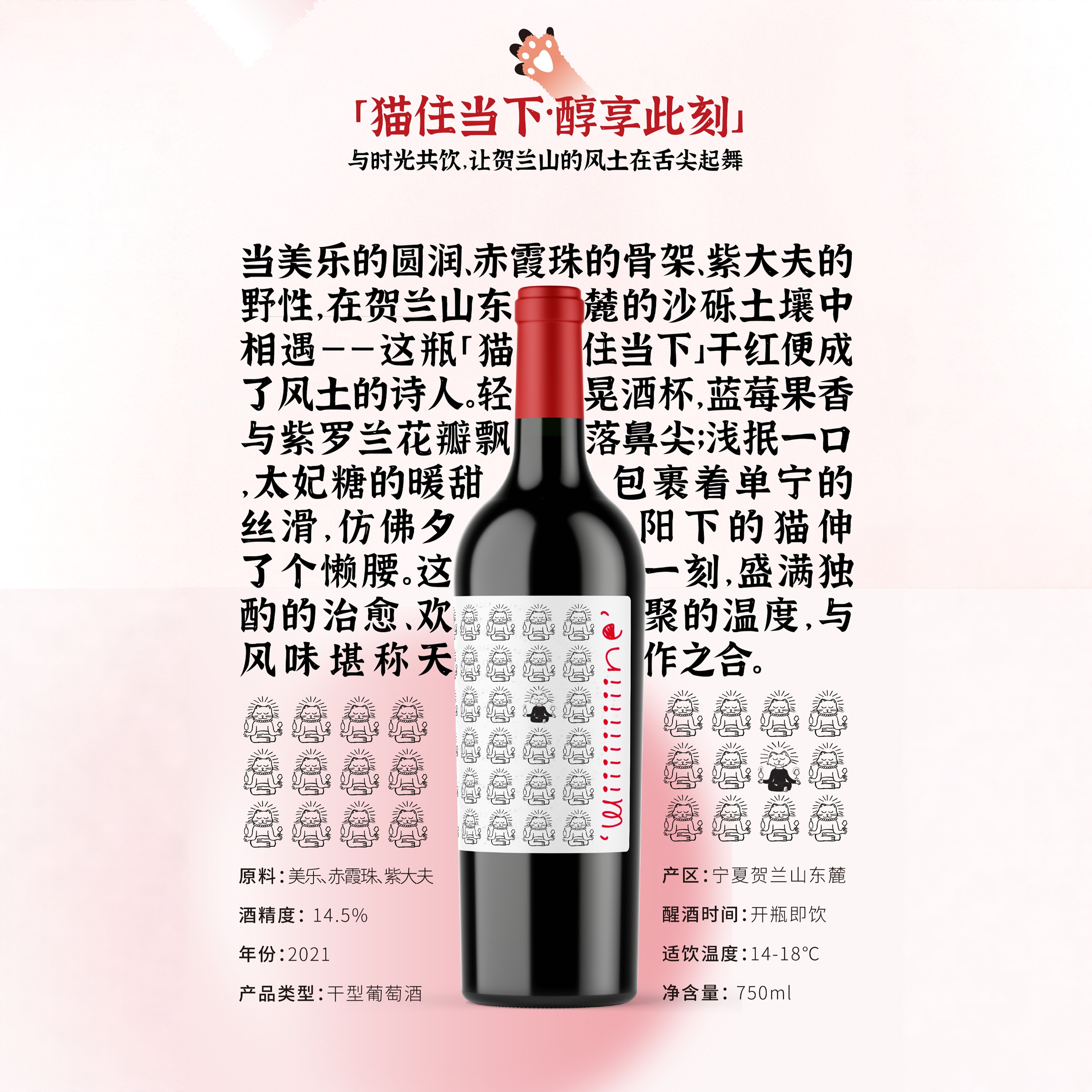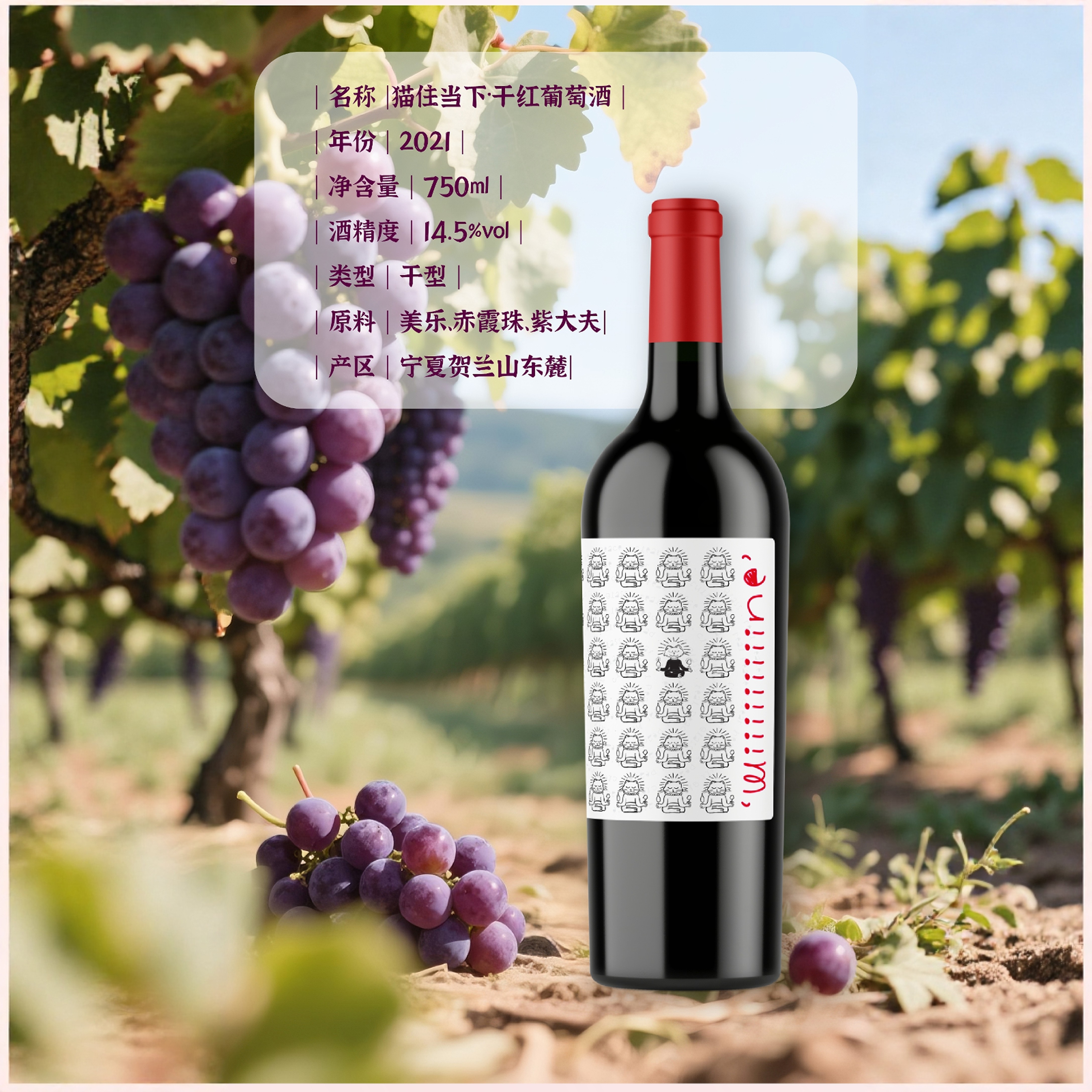 天猫长和翡翠猫住当下干红宁夏贺兰山葡萄酒配餐美食搭子口粮酒