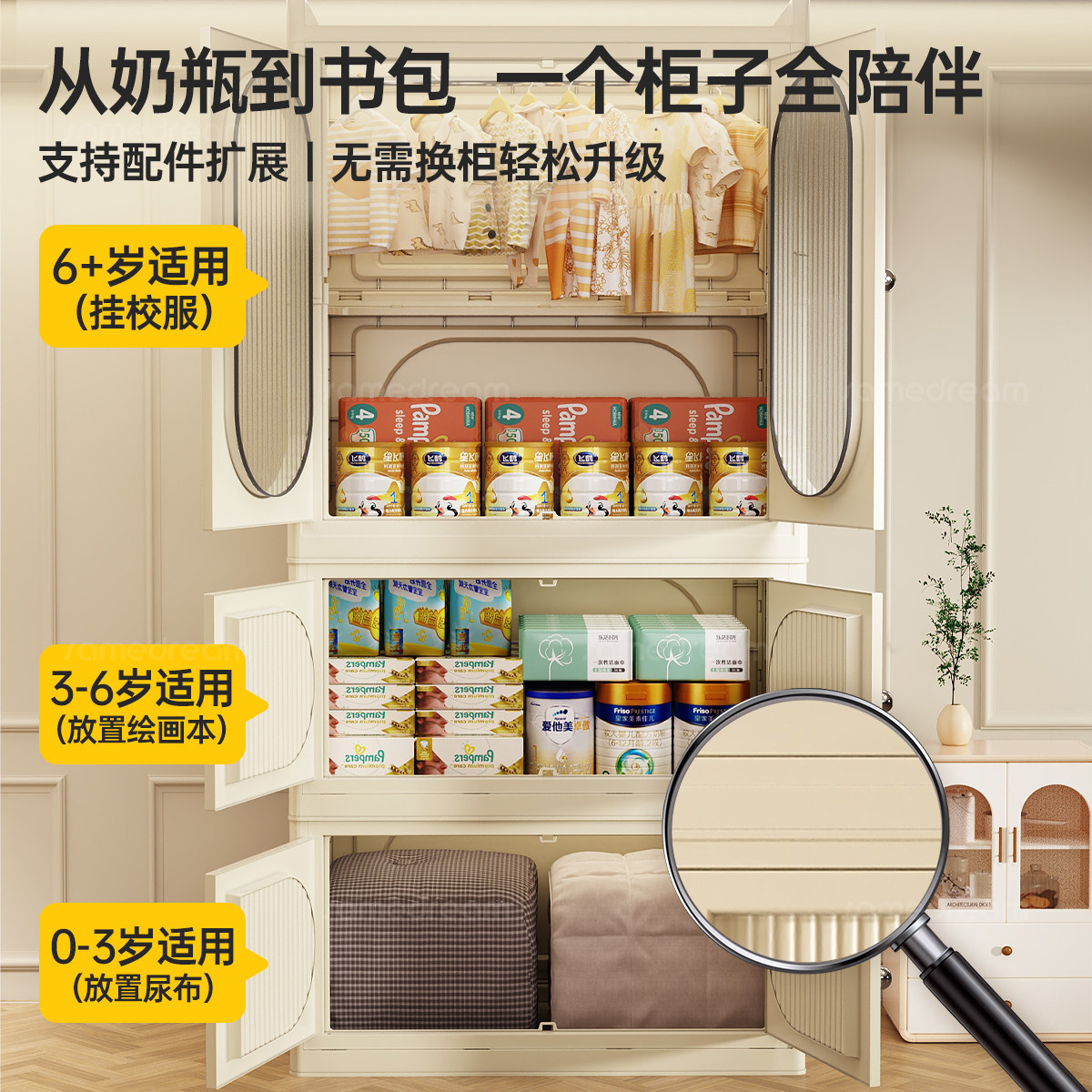 这款儿童衣柜专为家用卧室设计,采用环保材质,无甲醛释放,安全健康,呵护宝宝呼吸健康。结构结实耐用,承重能力强,可放心收纳衣物、玩具等日常用品。折叠设计节省空间,轻巧便携,搬家或换季时轻松收纳。免安装设计,开箱即用,操作简单,家长省心省力。柜体边角圆润处理,避免磕碰,保障孩子安全。多层收纳空间合理分区,培养孩子自主整理习惯。简约美观的外观,适配各种家居风格,是宝宝房间的理想收纳选择。安全、实用、便捷,让育儿生活更轻松。