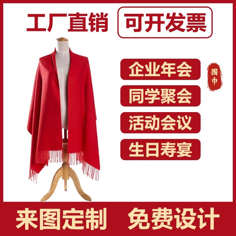 天红围巾定制logo印字公司企业年会开业庆典同学聚会活动中国红围脖