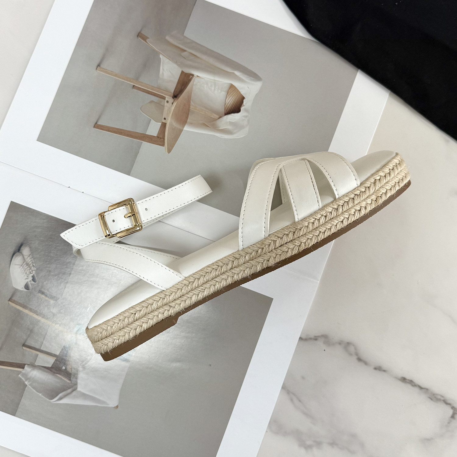 淘宝夏日罗马风外贸原单简约风方头镂空交叉绑带草编织外贸大码女凉鞋