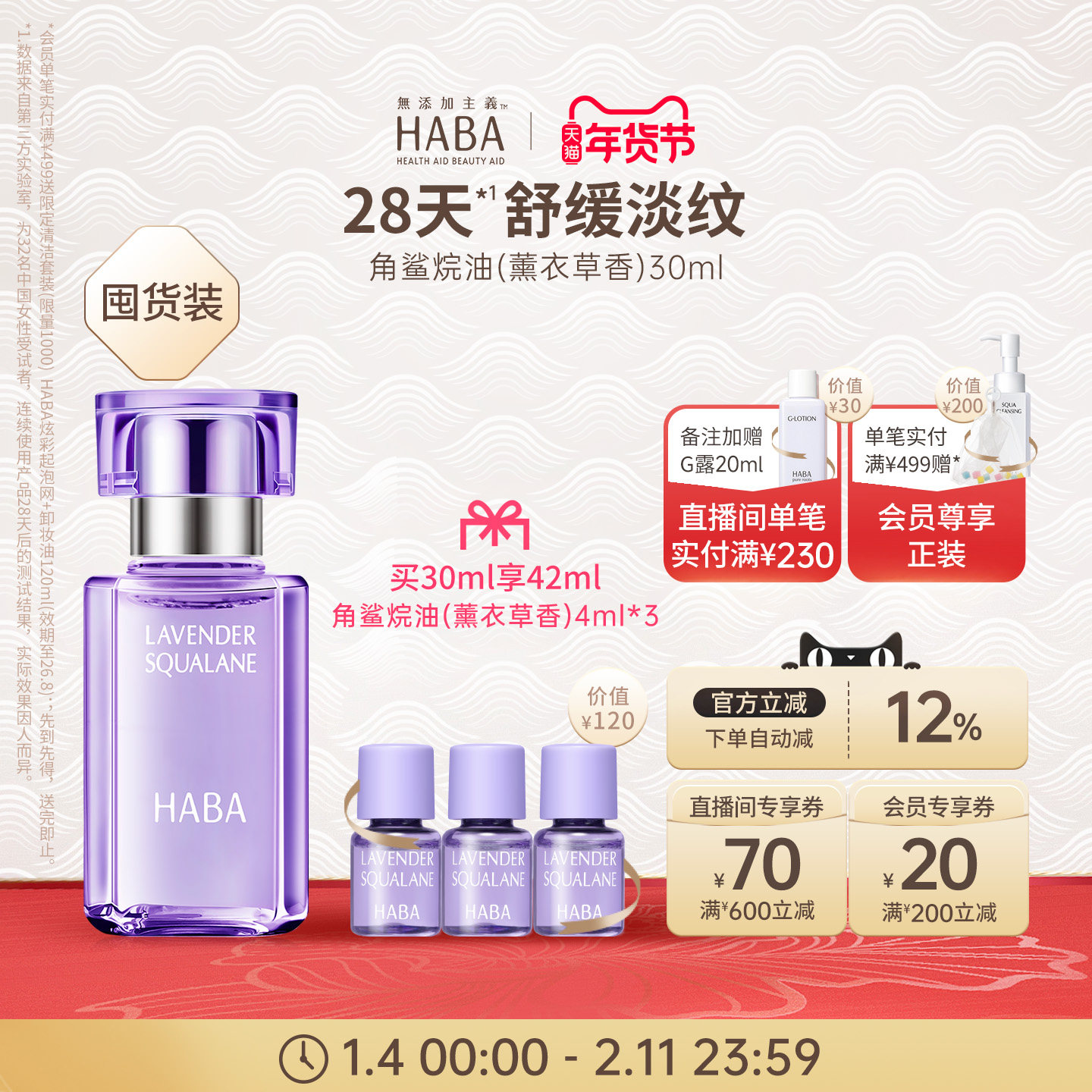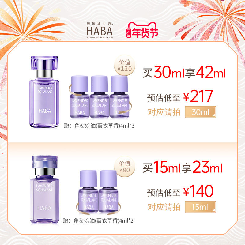 天猫HABA鲨烷精纯美容油(薰衣草香)15ml/30ml 舒缓修护抗皱以油养肤