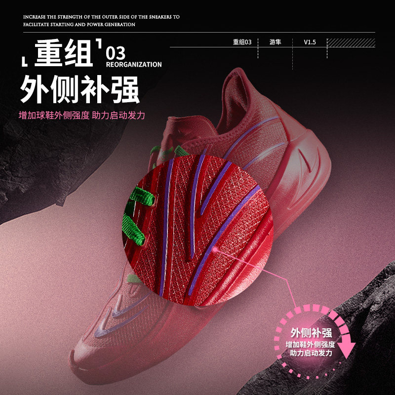 维动游隼1.5代篮球鞋男新款,专为实战设计,融合专业性能与时尚外观。采用轻质透气鞋面,提供出色包裹性与舒适感,低帮设计增强脚踝灵活性,助力快速变向与突破。中底搭载高效减震科技,有效缓解落地冲击,保护膝盖与脚踝;外底配置多向防滑纹路,抓地力强劲,适应室内外多种场地。鞋头与侧边强化支撑结构,提升稳定性与耐用性。无论是高强度比赛还是日常训练,维动游隼1.5代都能带来卓越表现,是追求速度与爆发力的篮球爱好者理想之选。