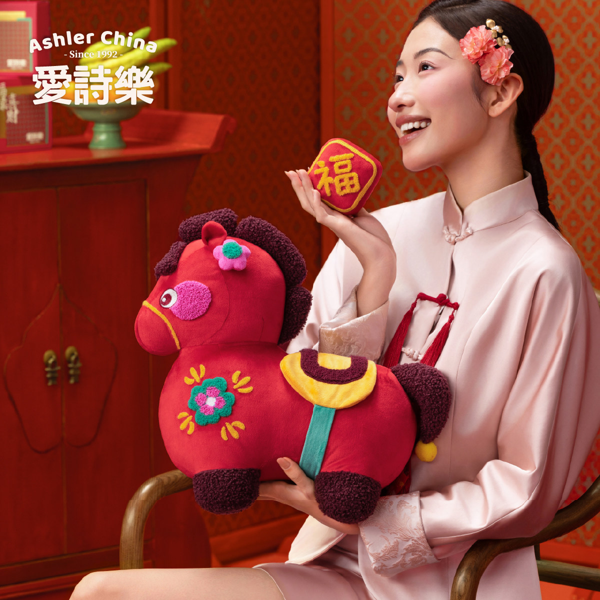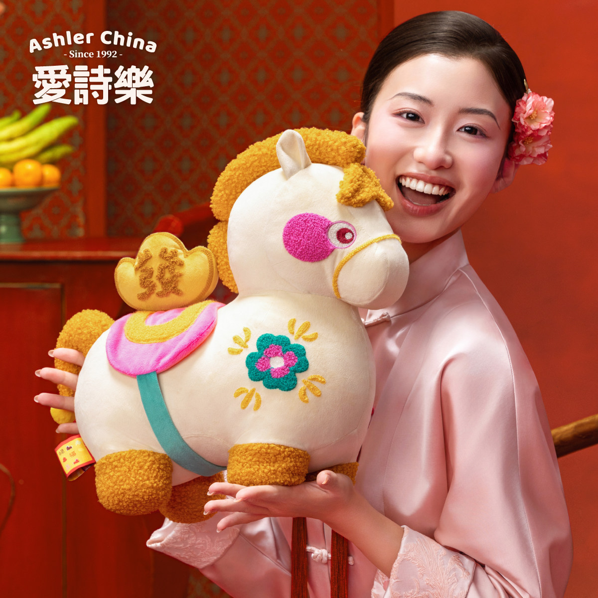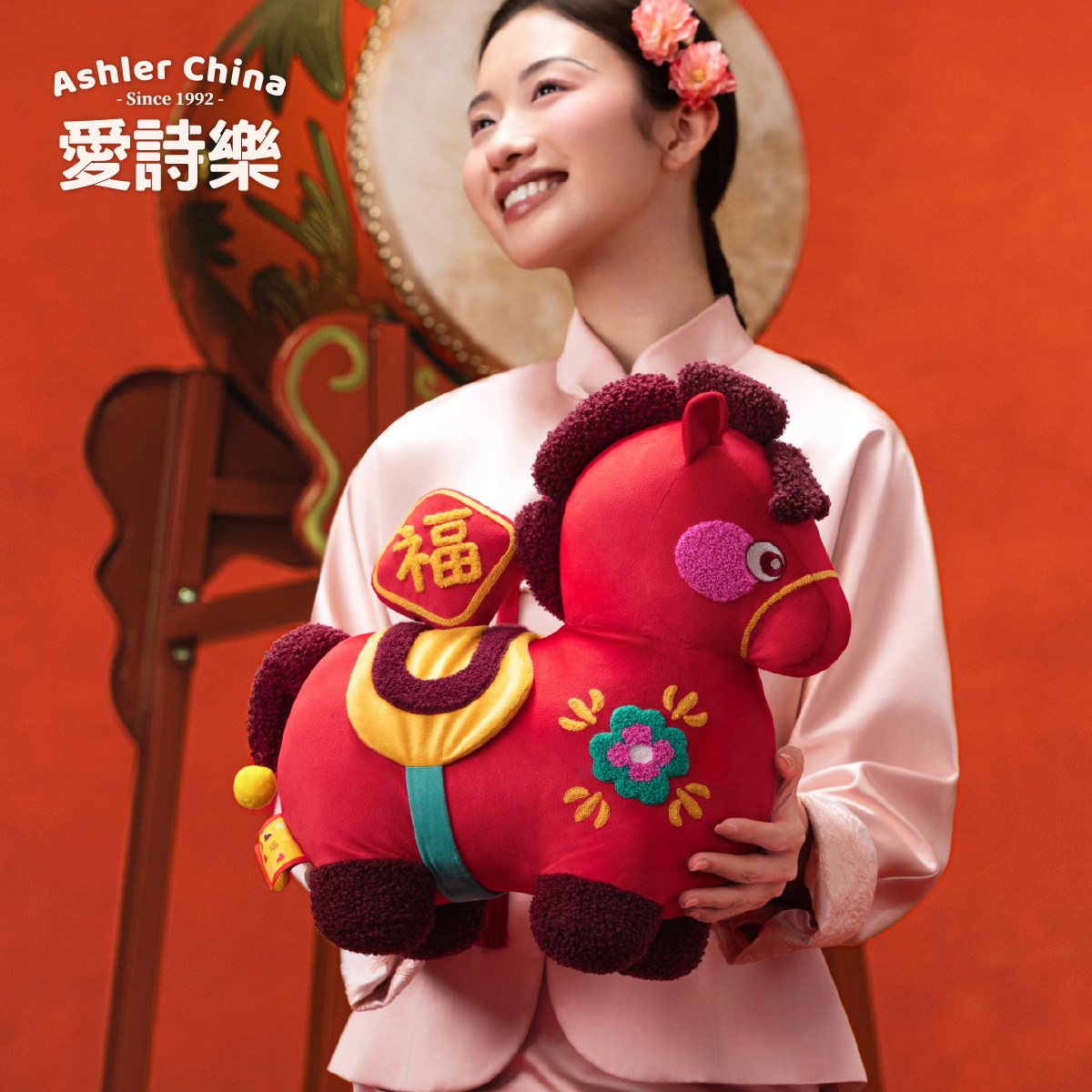 【节日礼物】爱诗乐『好事来樂』玩偶抱枕,以中国传统生肖马为灵感,融合新中式美学设计,寓意“马上有福,好事来临”。抱枕造型憨态可掬,采用优质亲肤面料,触感柔软,填充饱满,既是温馨实用的沙发抱枕,也是客厅、卧室的雅致摆件。精致刺绣工艺搭配吉祥纹样,细节考究,年味十足。无论是春节、乔迁、生日馈赠,还是自用装饰,皆能传递美好祝愿,营造喜庆祥和的家居氛围。爱诗乐匠心打造,让传统与现代交融,为节日增添一抹温暖与祝福,是传递心意的理想之选。