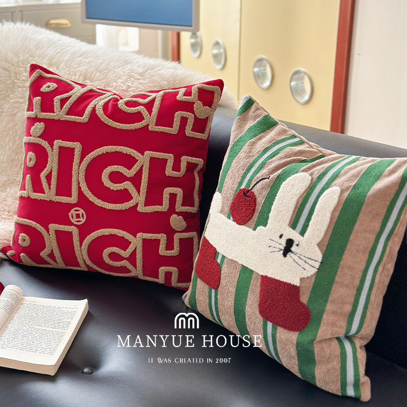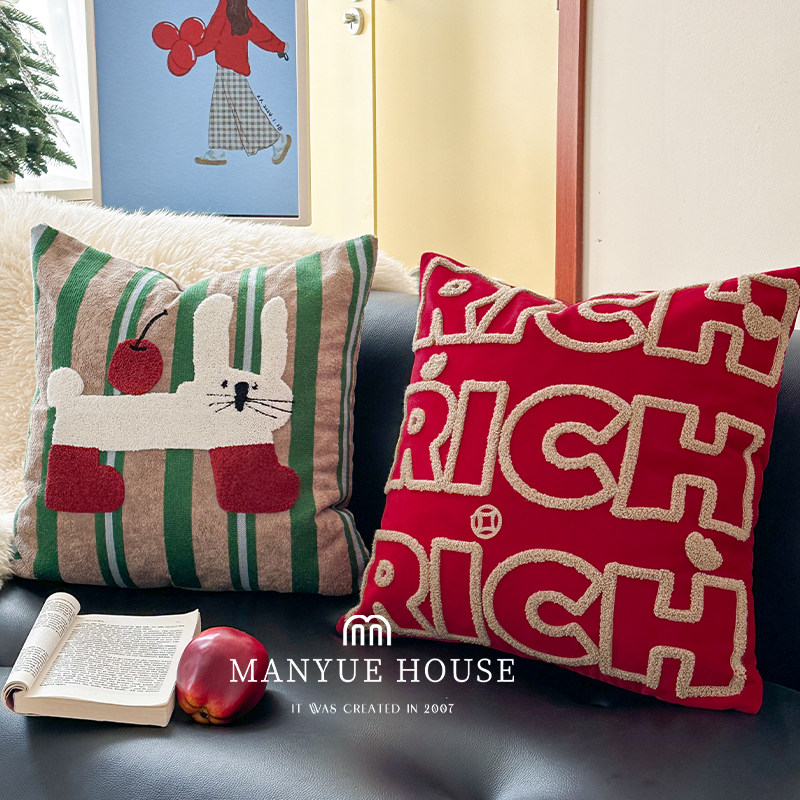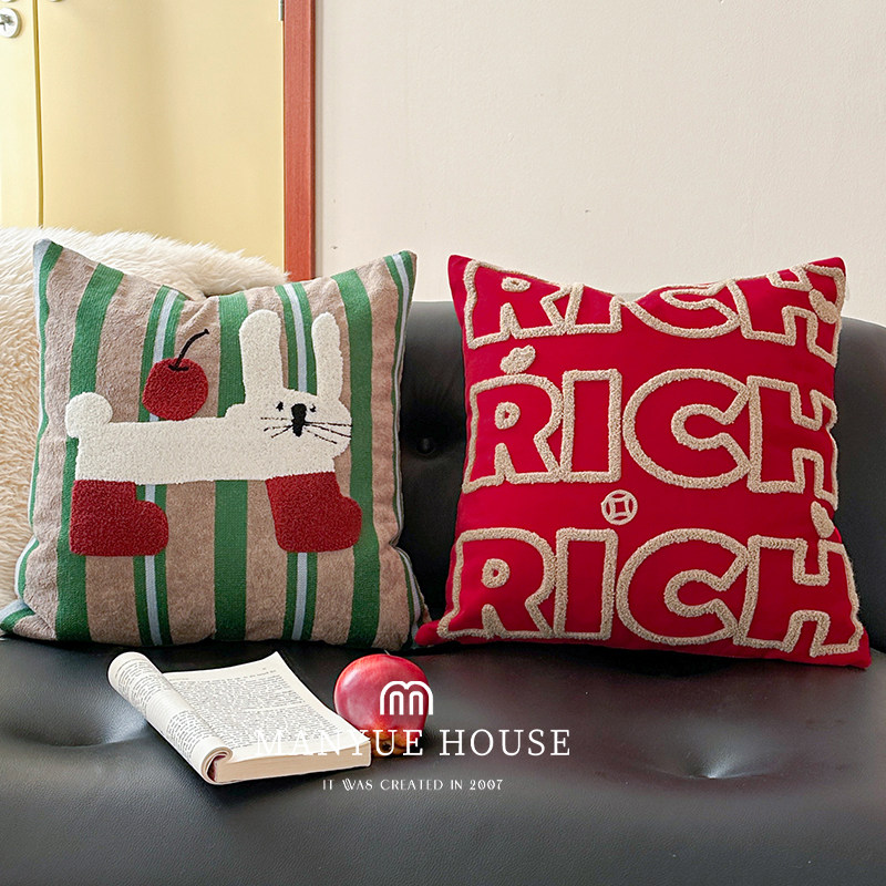 淘宝蔓越家 苹果兔 新年客厅沙发抱枕靠垫喜庆腰枕靠背抱枕套不含芯