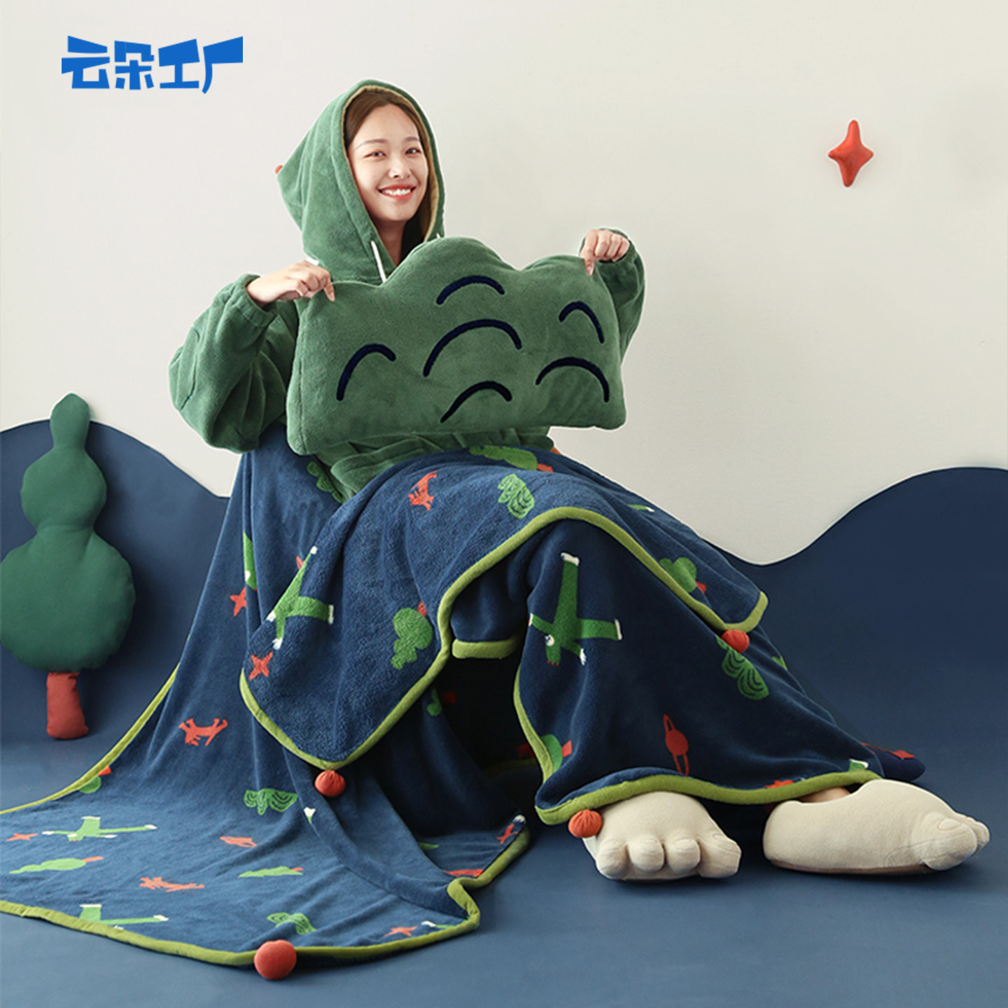 天猫云朵工厂两用抱枕毯办公室午睡毯二合一珊瑚绒空调毯沙发毯空调被