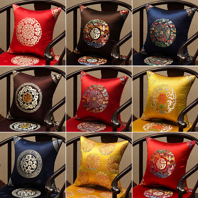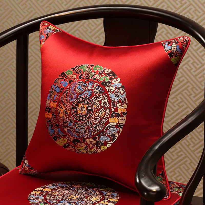天猫中式红木沙发抱枕靠垫中国风客厅靠枕实木椅子大靠背垫红色抱枕套