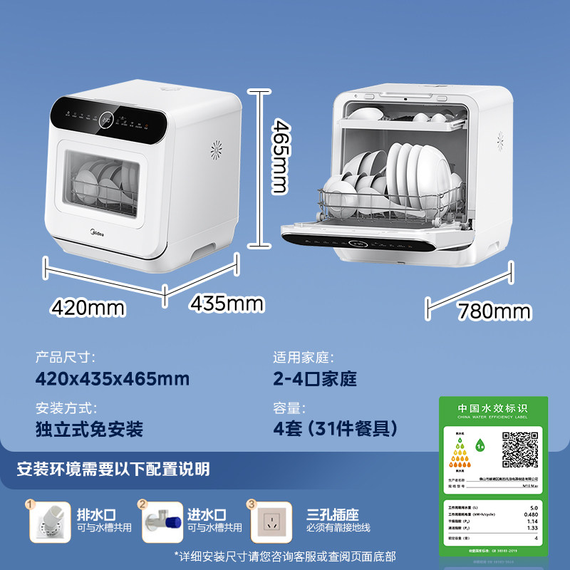 天猫美的小型洗碗机4套家用消毒柜全自动台式消毒一体免安装M10max