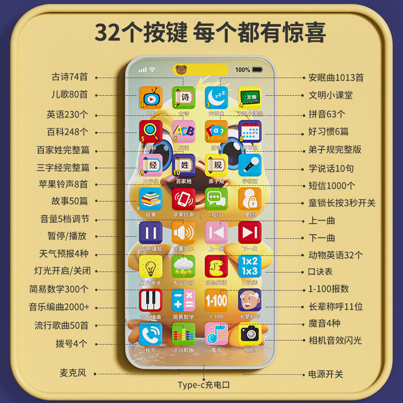 淘新款儿童益智玩具手机可啃咬早教学习机唐诗三百首拼音点读故事机