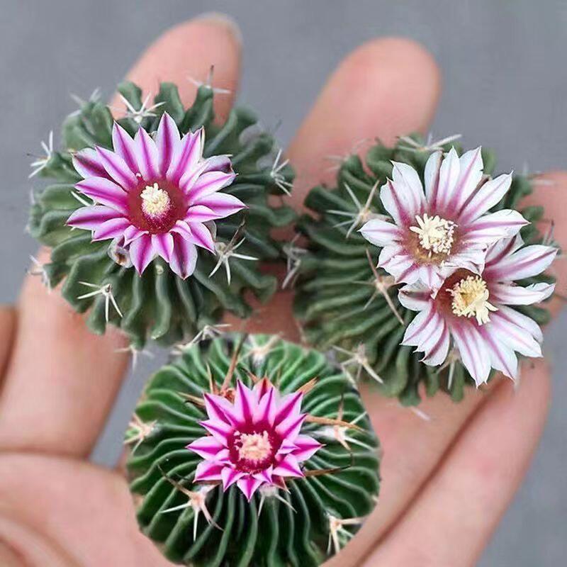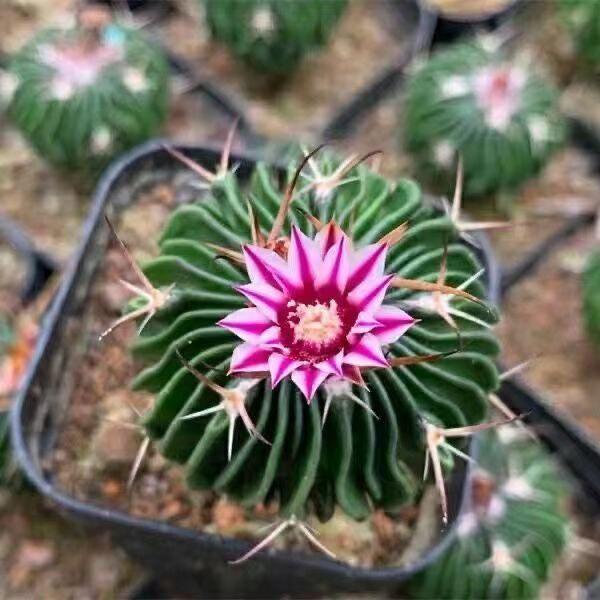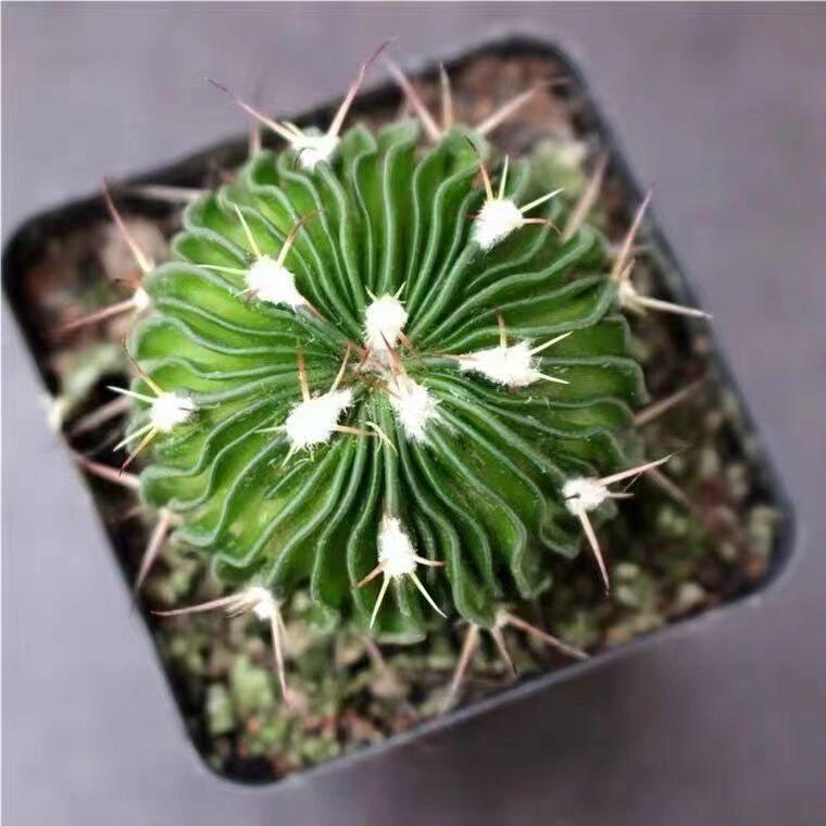 多棱玉仙人球是一款极具观赏价值的小型多肉植物,株型圆润饱满,棱线清晰分明,表面覆盖细密绒毛,呈清新翠绿色,宛如微型翡翠球。其根系发达,实生根强健,适应力强,易于养护。植株冠幅约4-5厘米,小巧精致,适合摆放在办公桌、书桌或窗台,不仅增添绿意,还被认为具有吸收电磁辐射、净化空气的作用。多棱玉喜阳光充足、通风良好的环境,耐旱怕涝,是新手养植的理想选择。作为绿色观赏植物,它既能美化空间,又能舒缓视觉疲劳,带来自然宁静的氛围。