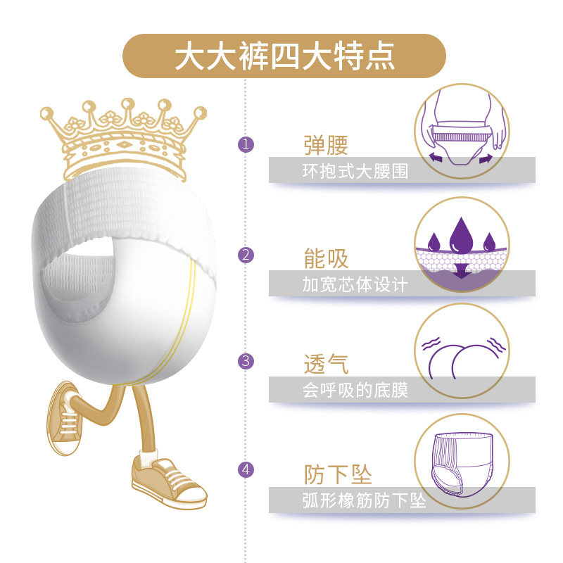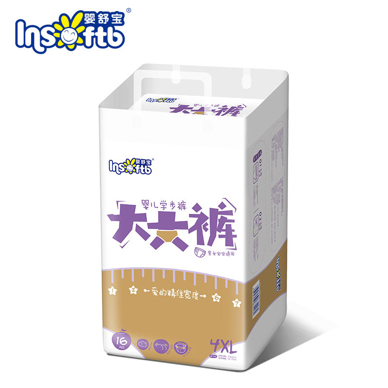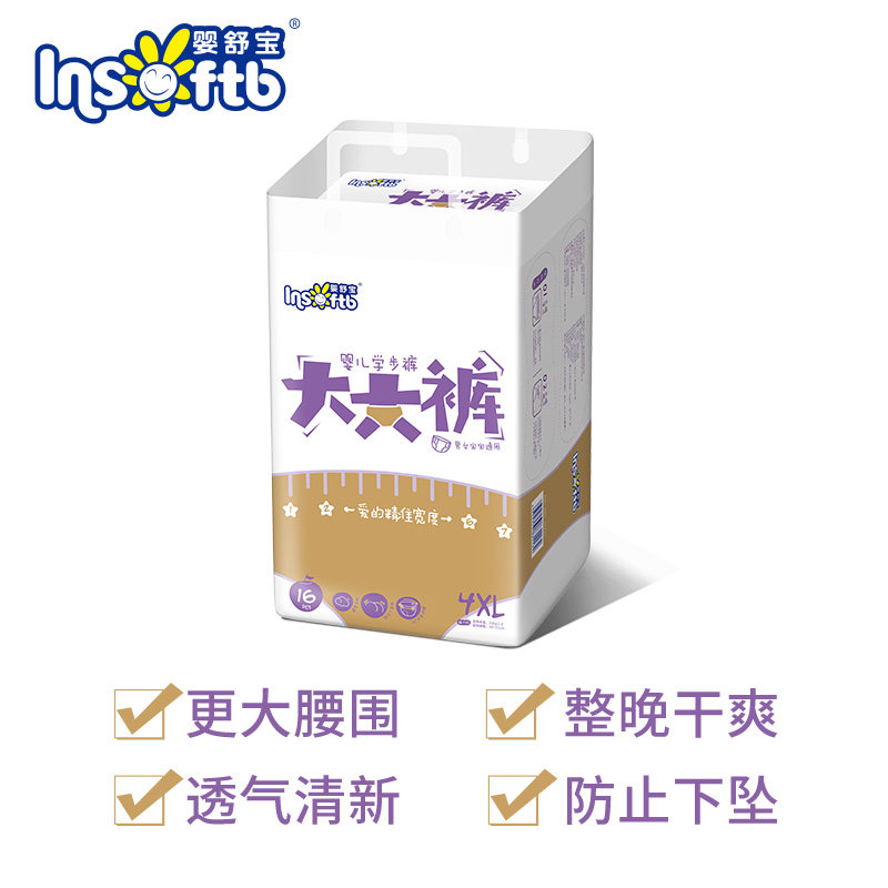 婴舒宝大大裤学步裤干爽XXXXL16特超大码专为体型较大的学步期宝宝设计,适合男女儿童使用。采用超薄透气材质,轻盈贴身,有效减少闷热感,保持小屁屁持久干爽。立体防漏隔边搭配高吸水性芯体,快速锁水不回渗,夜晚也能安心安睡。弹性腰围设计,穿脱自如,像小内裤一样方便,助力宝宝轻松学步。特别加宽裆部,活动更自由,不勒小肚子。XXXXL超大码型,满足大宝宝成长需求,是家长信赖的贴心之选。