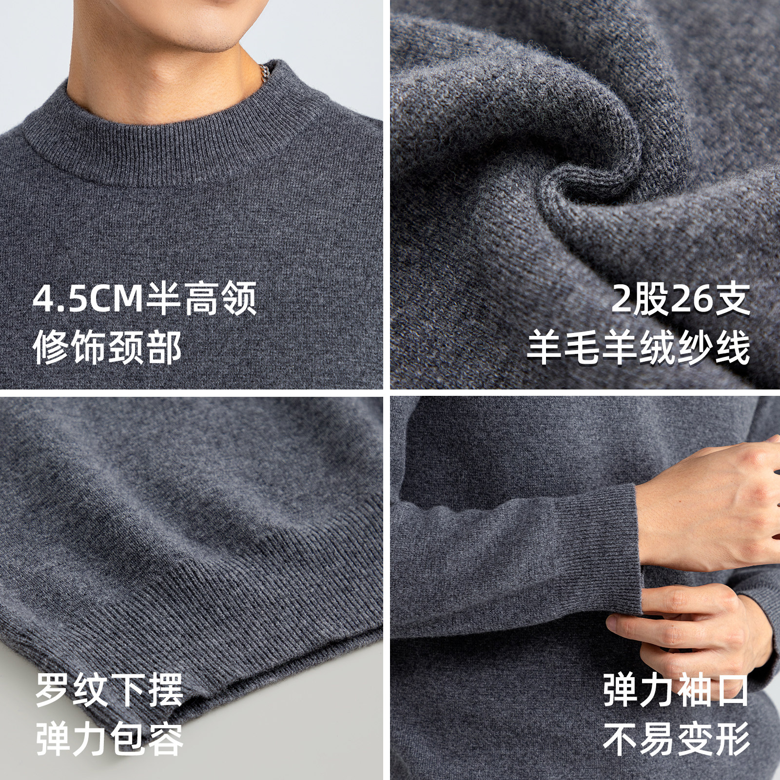 含【桑蚕丝+山羊绒】可机洗薄丝羊绒毛衣男高圆领贴身纯色针织衫