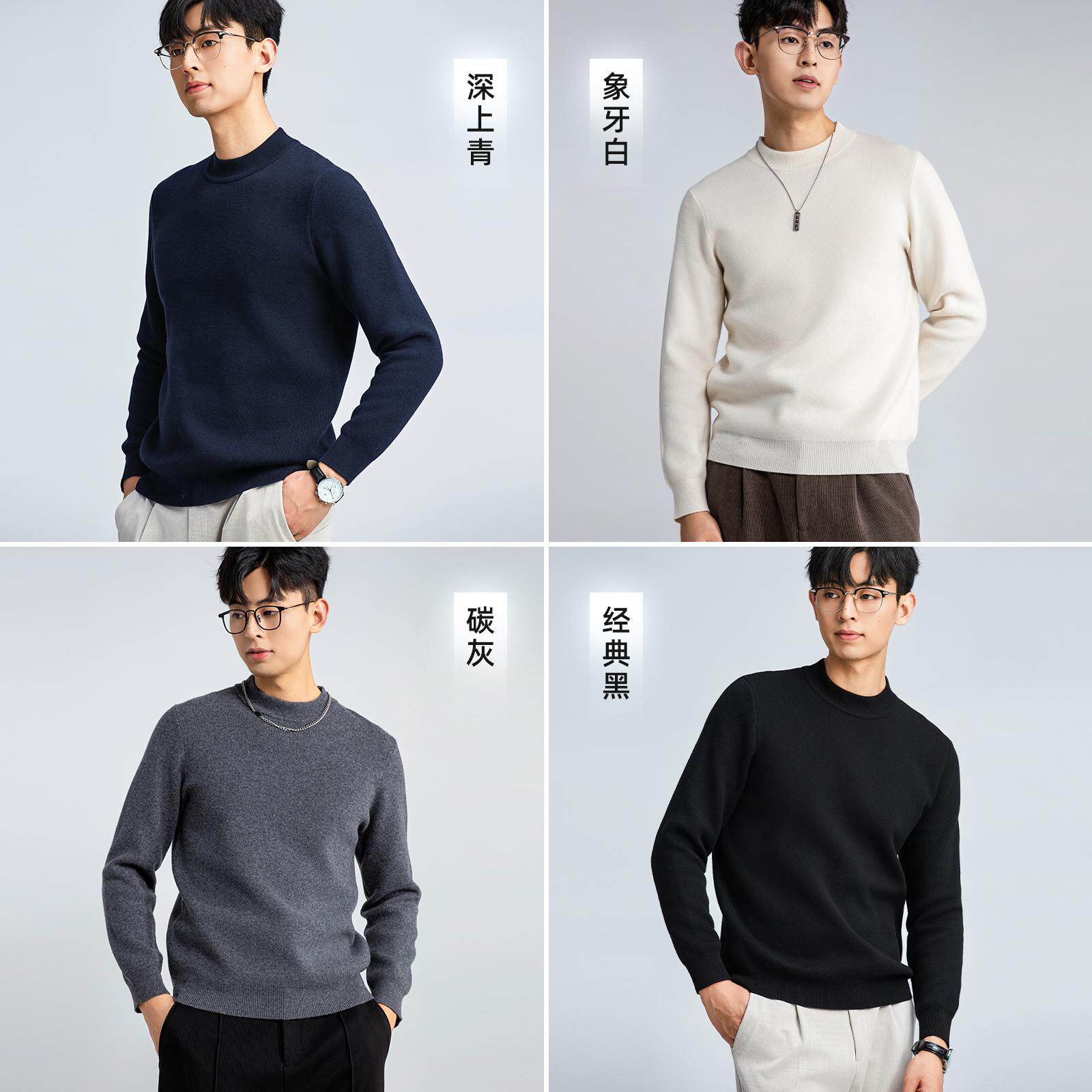 {含羊绒}男半高领毛衣精纺品牌加厚中领打底衫秋冬男装保暖上衣