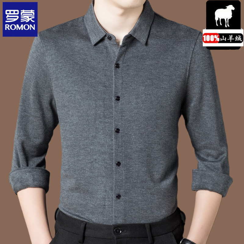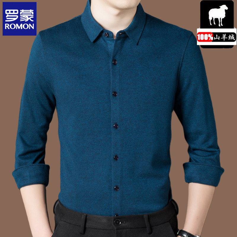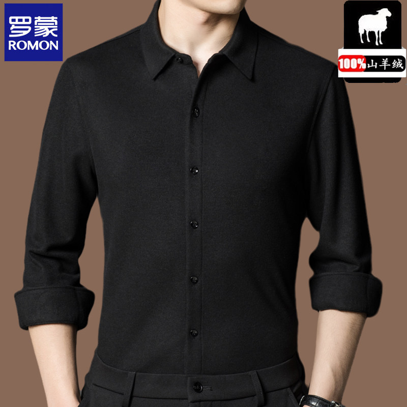 淘宝【高端商务】罗蒙100%纯羊绒衫男加厚秋冬中年纯色打底保暖衬衫男
