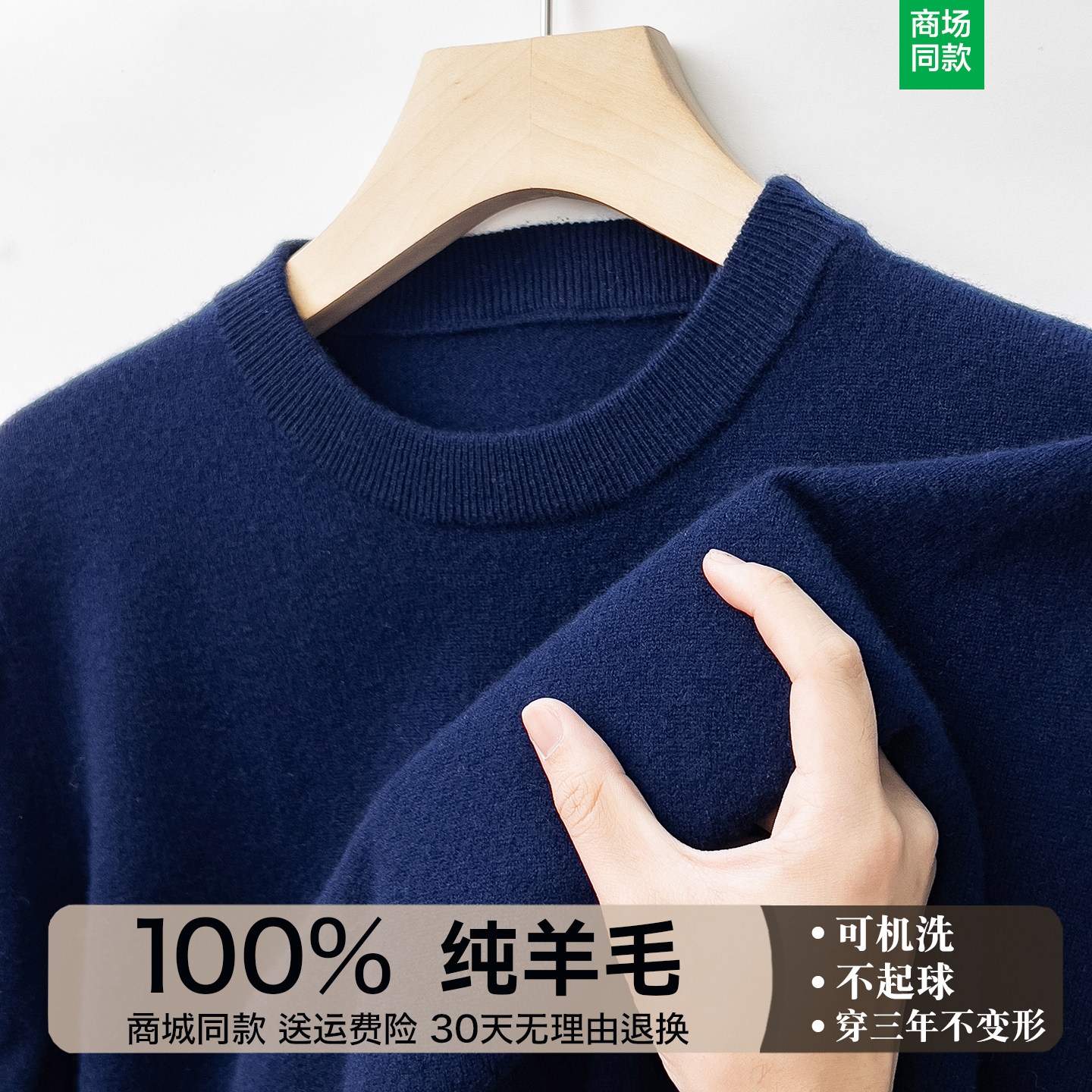 淘宝新款100%纯羊毛衫男士圆领毛衣秋冬季加厚保暖中年针织打底羊绒衫