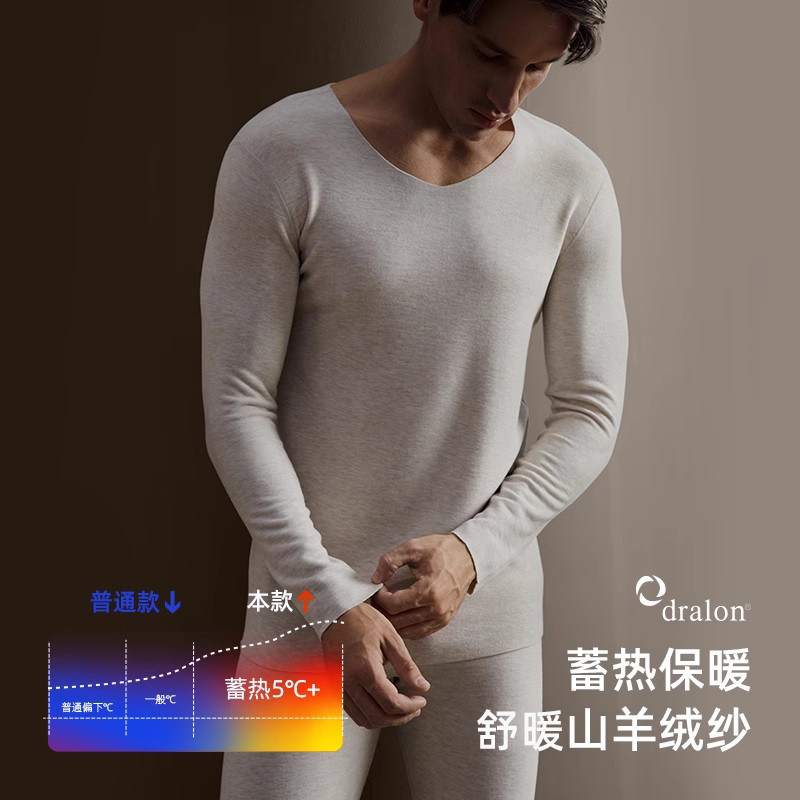 天猫保暖内衣男士羊绒蚕丝薄款打底衫无痕德绒发热秋衣秋裤套装男加绒