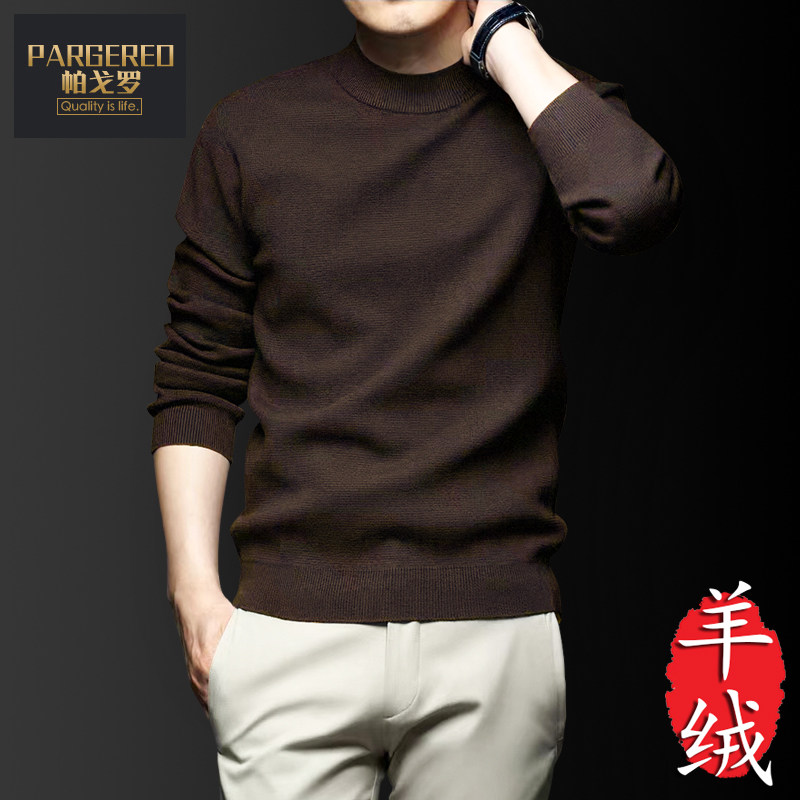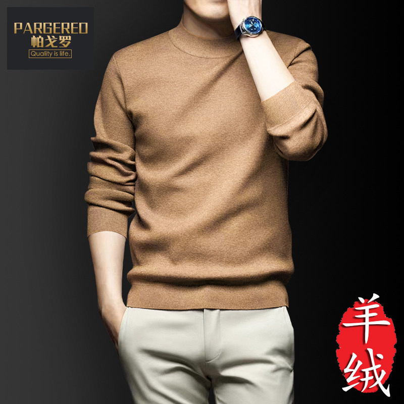 天猫{含羊绒}男半高领毛衣精纺品牌加厚中领打底衫秋冬男装保暖上衣