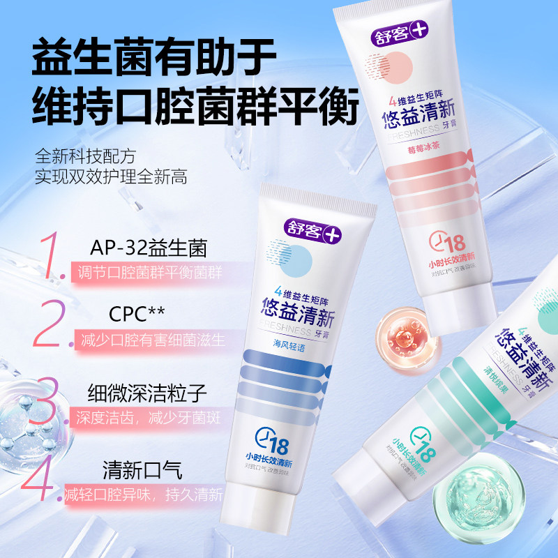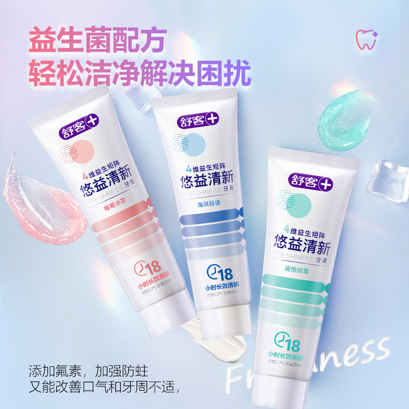 淘宝舒客舒克益生菌牙膏清新口气防蛀去黄去牙渍通用家庭装120g