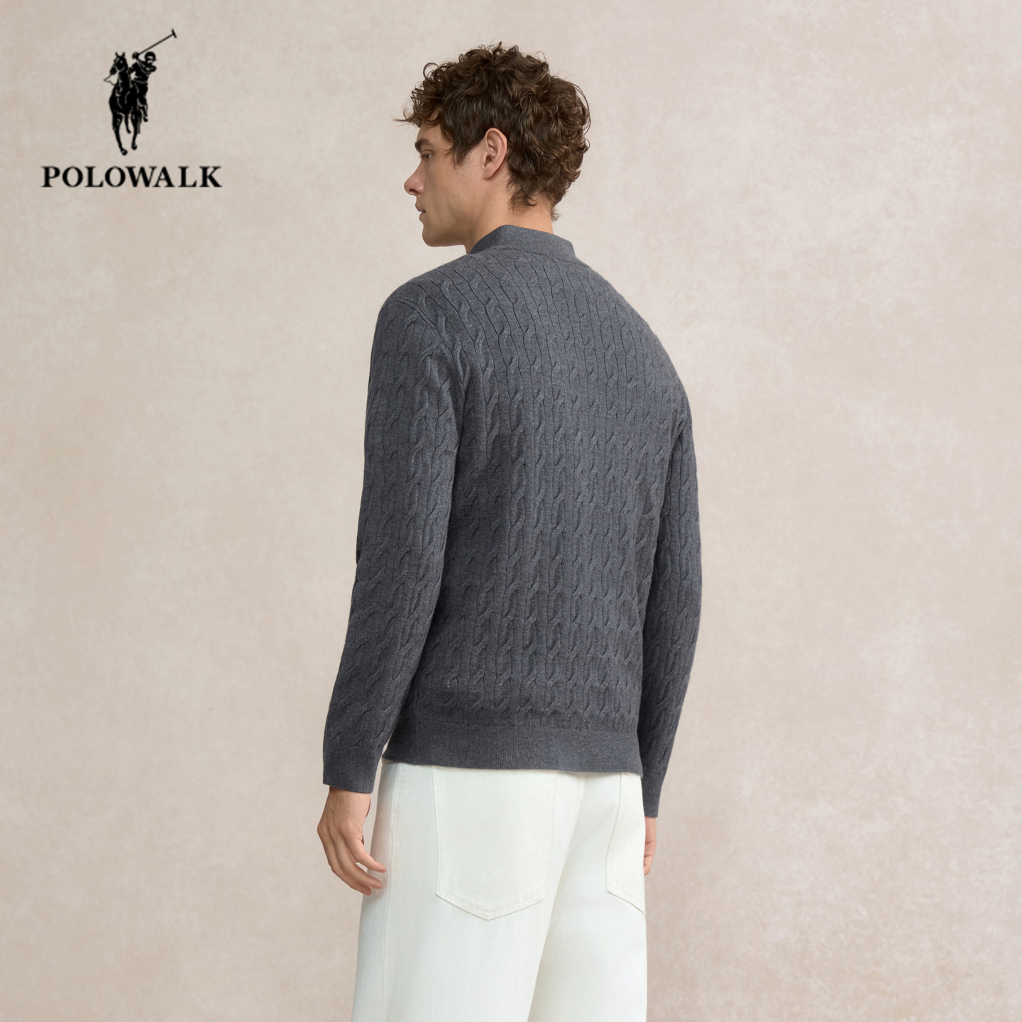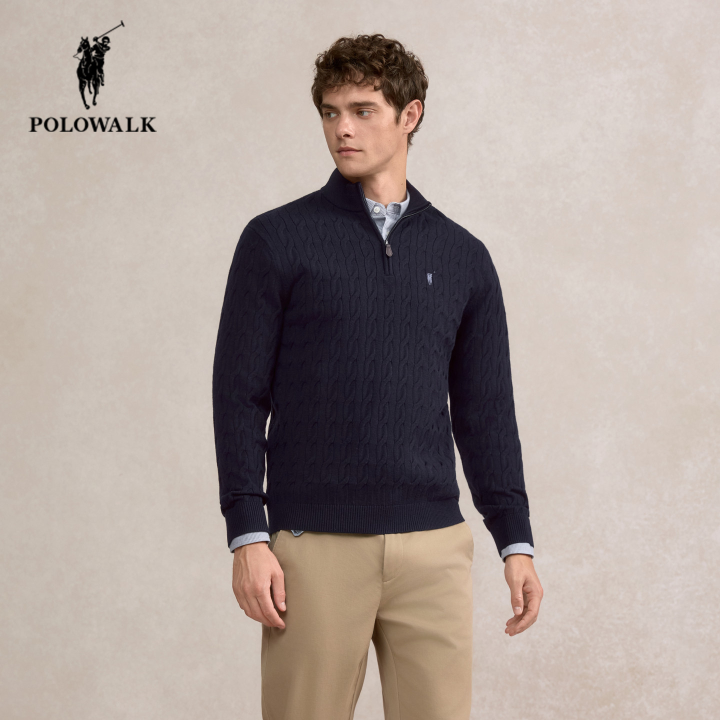 天猫POLOWALK男士立领针织衫25秋季新款保罗男装商务通勤气质绞花毛衣
