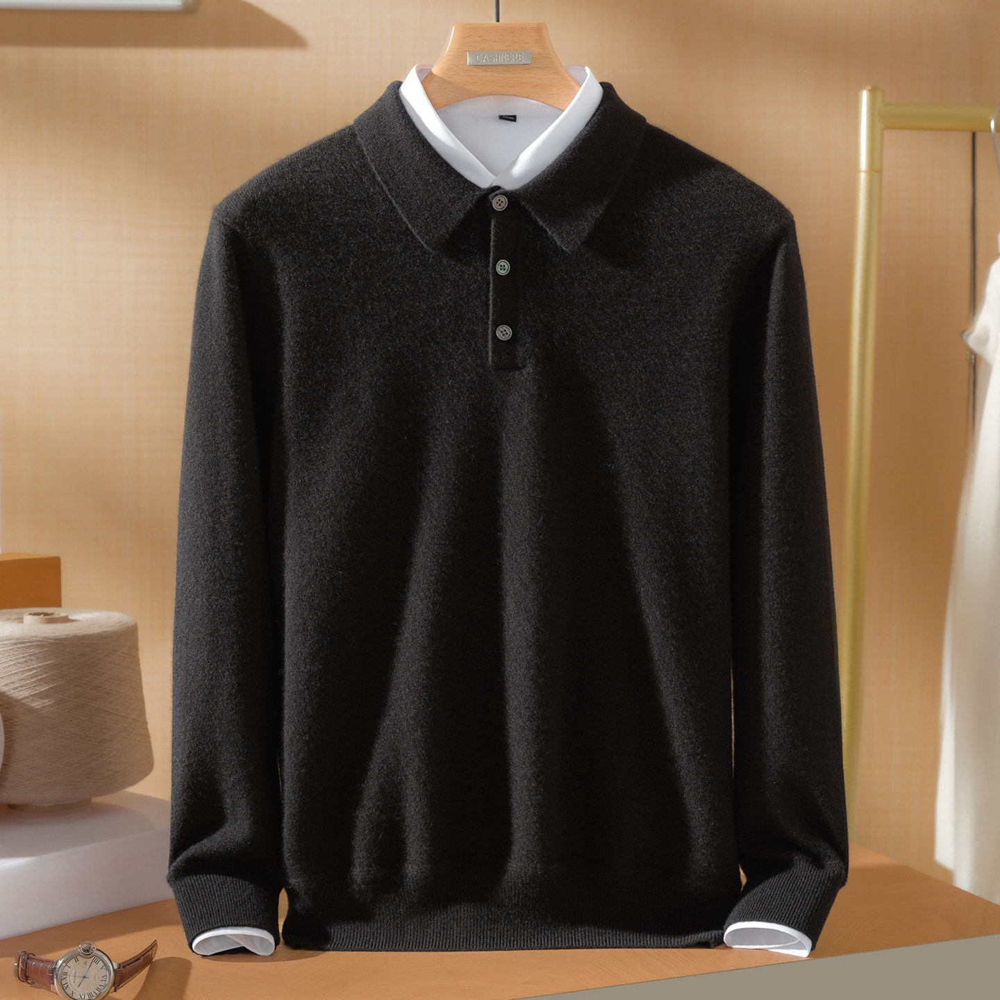 淘宝baby小山羊绒康家线韩式休闲风POLO领纯羊绒衫男长袖针织毛衣新款