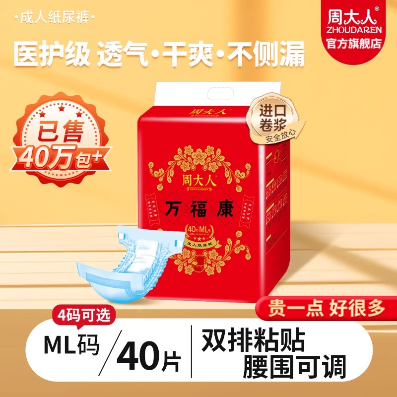 天猫周大人成人纸尿裤老人用中大号老年女士男ML码非拉拉裤尿垫尿不湿