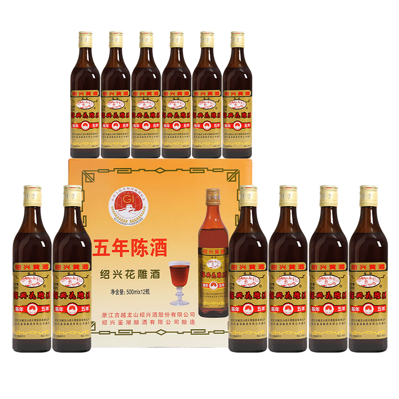 天猫古越龙山黄酒 绍兴花雕酒鉴湖5年陈年五年花雕500ml*12瓶整箱